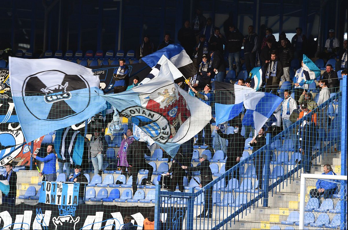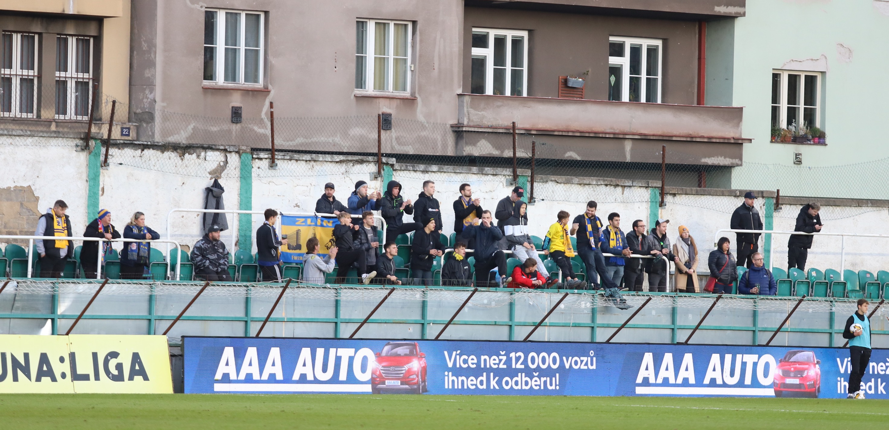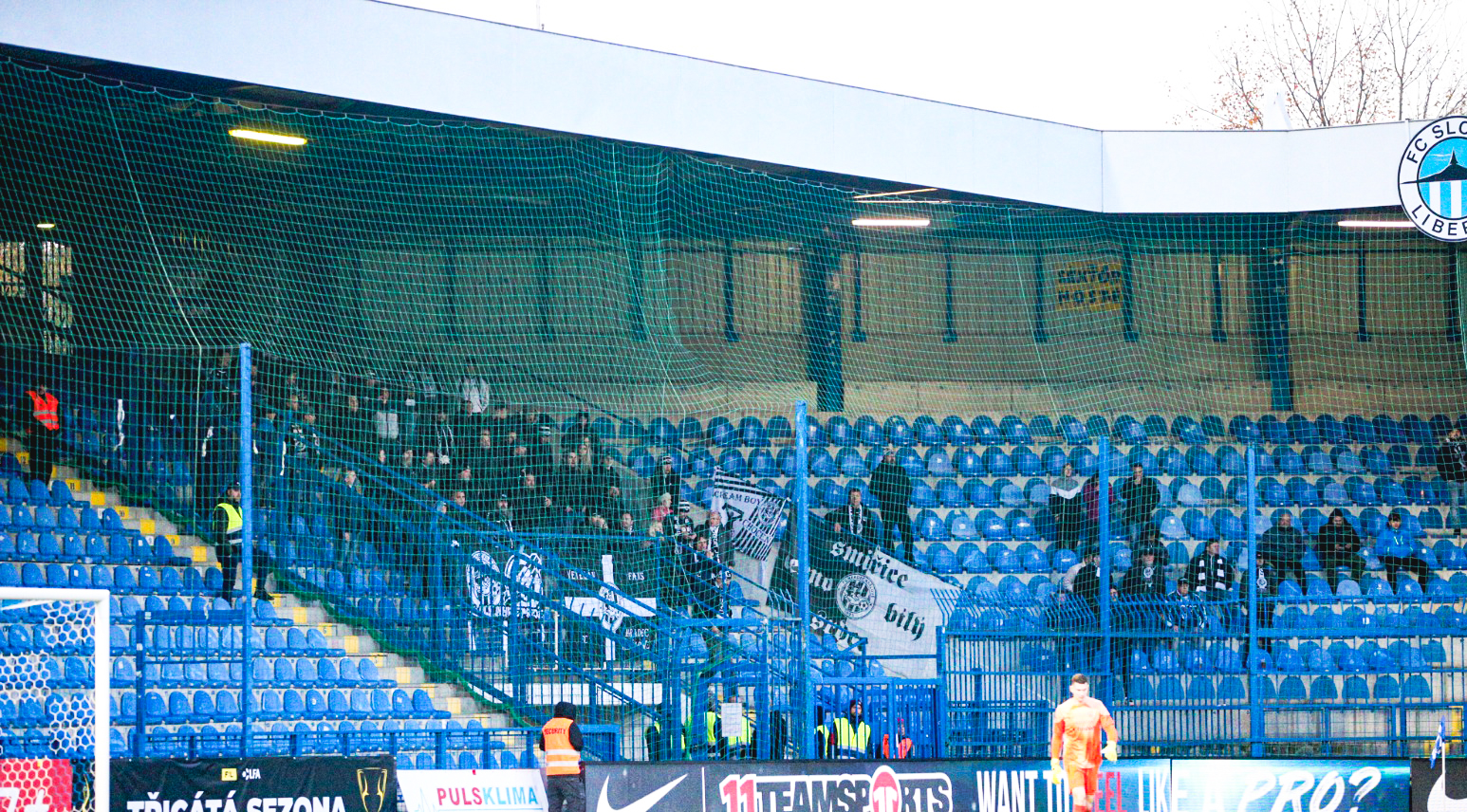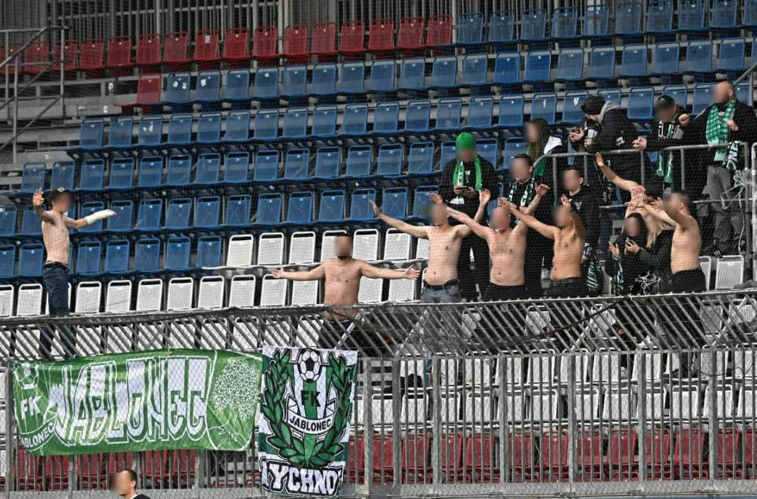 Jen telegraficky můžeme informovat, že domácích se ve svém kotli sešlo cca 20 bez vlajek. Hostující kotel měl ověšený celý přední plot vlajkami a další zástavy visely i na zábradlí v sektoru. Zbrojováky podporovalo odhadem 80 osob.