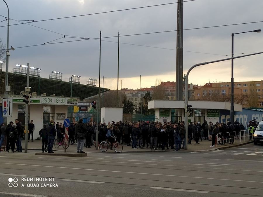 Fanoušci byli před branami, na štaflích, plošinách, balkónech i střechách...