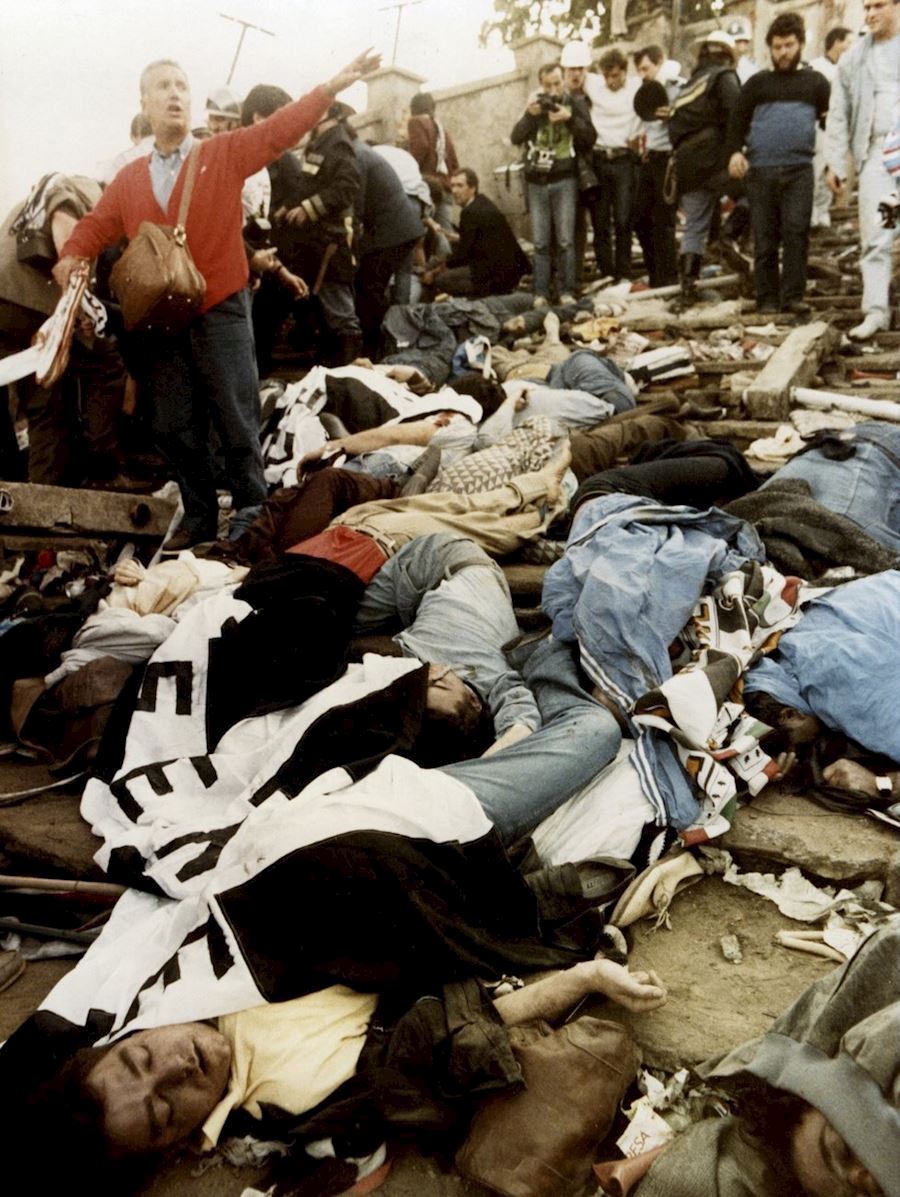 96 mrtvých (15. dubna 1989) - Tlačenice v Sheffieldu na stadionu Hillsborough, kde v prvních minutách semifinále Anglického poháru FC Liverpool - Nottingham Forest vpustili pořadatelé do již zaplněného hlediště 4000 liverpoolských fanoušků bez vstupenek, si vyžádala 96 obětí a na 200 zraněných.