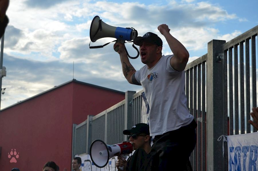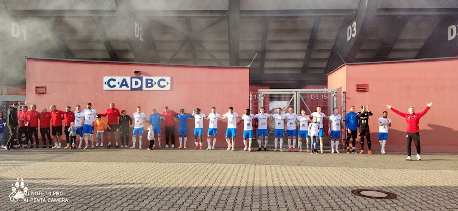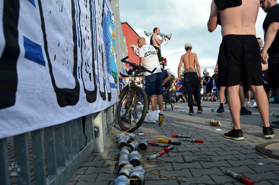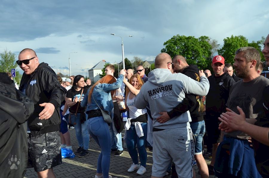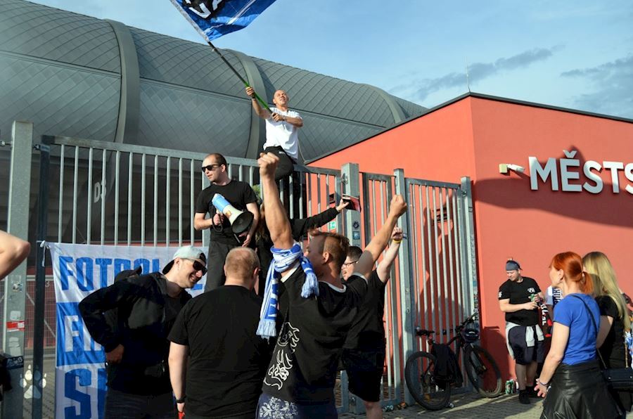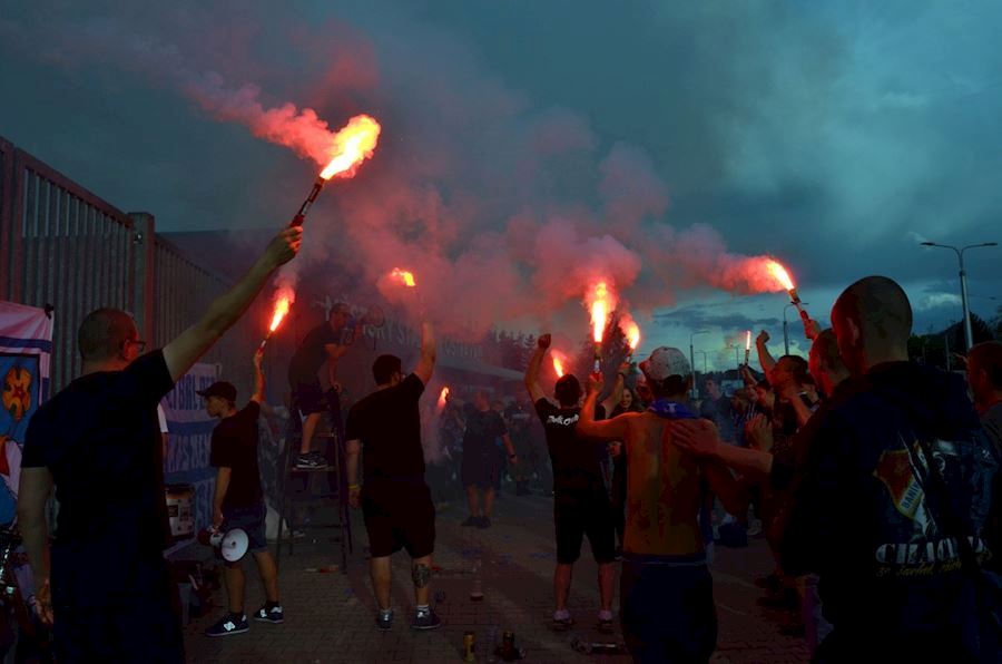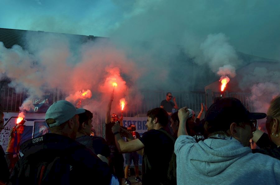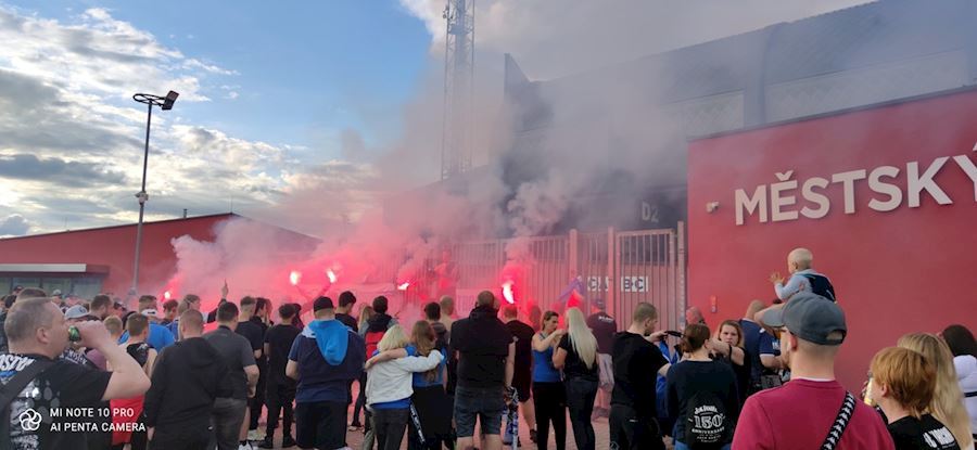 Dýmovnice, světlice a vítězná děkovačka s týmem před stadionem...