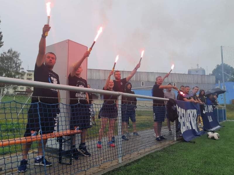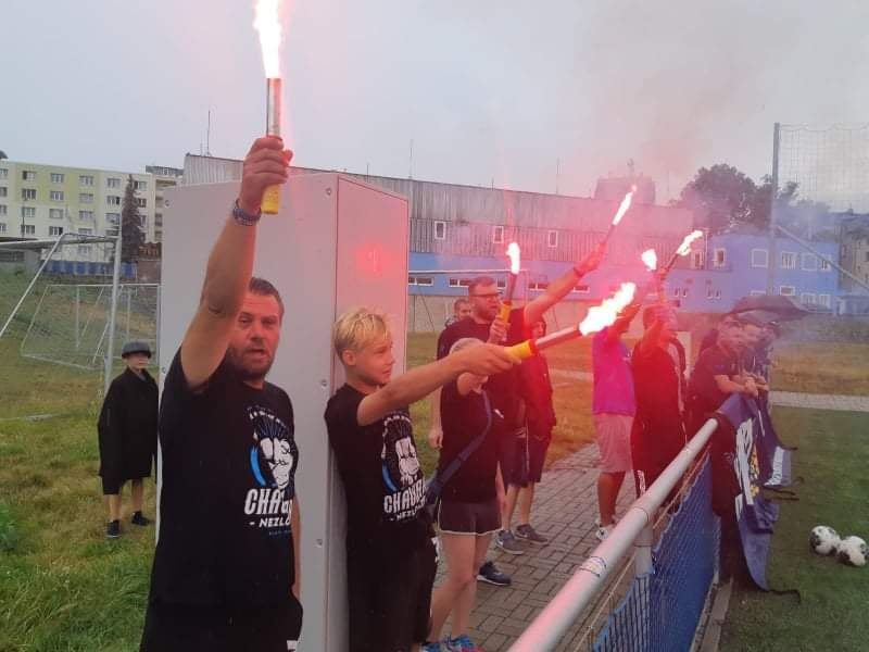 Během společného zápasu kategorie U10 spouští support a odpalují několik rací...