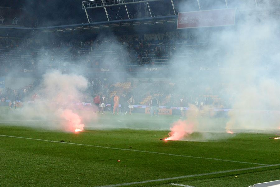 Chorea, pyro, skvělá atmosféra, ale taky pyro na hřišti a čím dál větší tlak ultras Sparty směrem k vedení klubu... Remízu 1:1 sledovalo na pražské letné 15.457 diváků.
