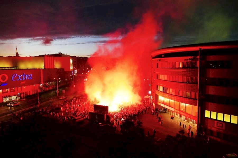 Branky se sice fanoušci v zápase nedočkali, ale nikoho to moc nemrzelo. V Edenu se na tribunách sešlo 4700 diváků, kteří si užili vůně pyrotechniky a oslavili společně s týmem zisk titulu jak na stadionu, tak i před ním...