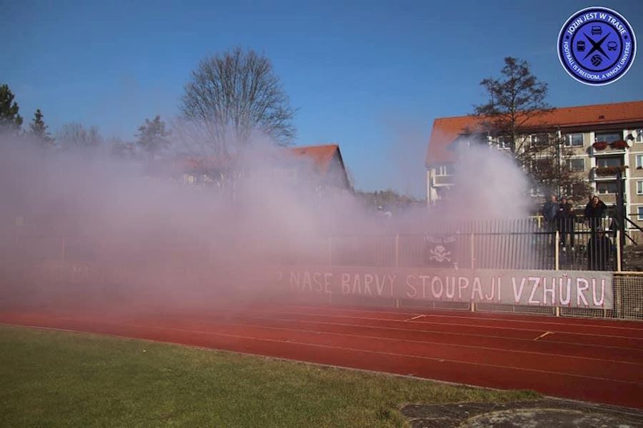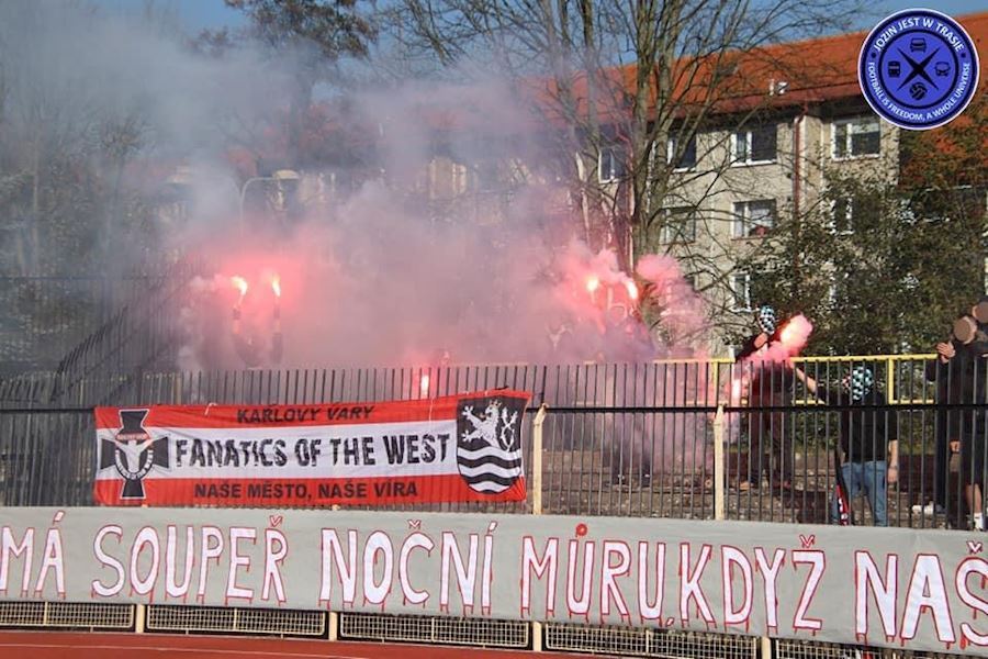 Derby v ČFL mezi Sokolovem a Slavií Karlovy Vary nabídlo zajímavou podívanou v hledišti. Nechybělo ani pyro.
