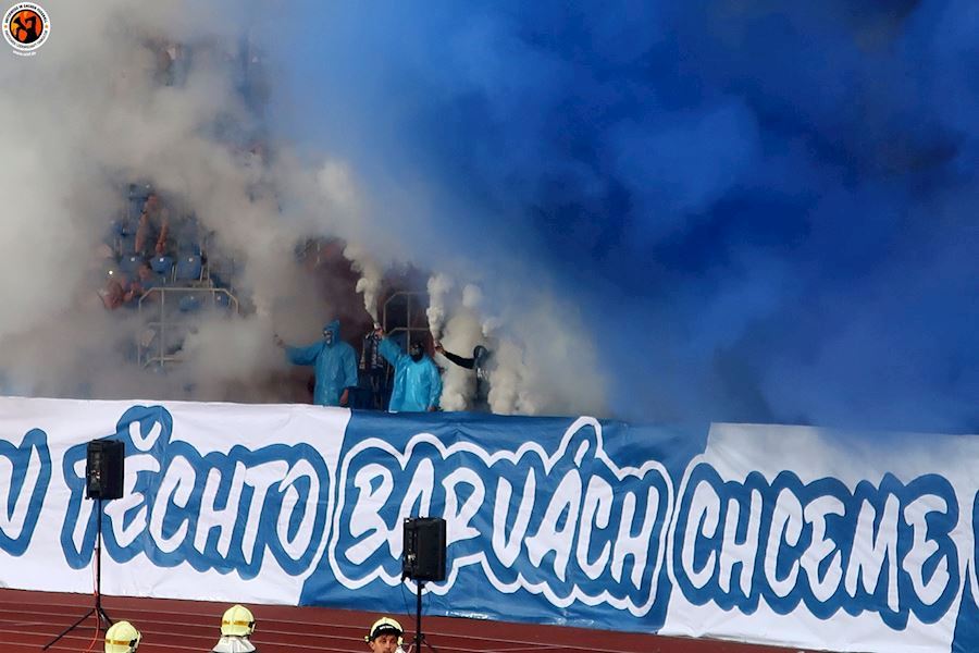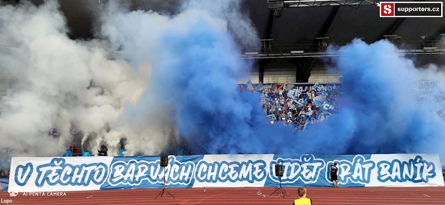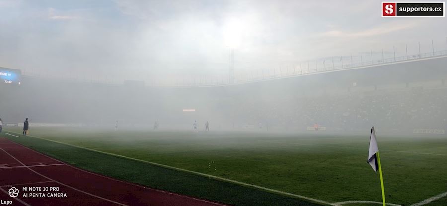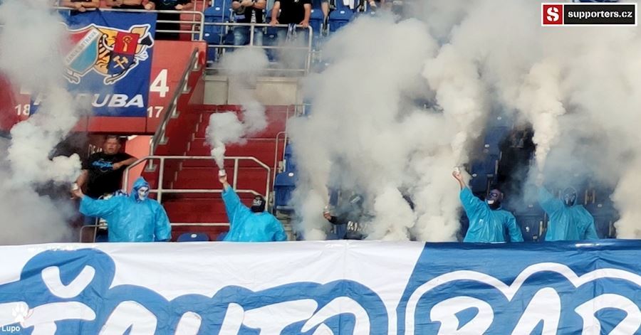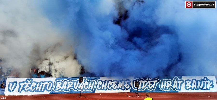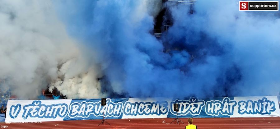 Chachaři ve druhé půli dezinfikují stadion pyrem a Baník následně vyrovnává...