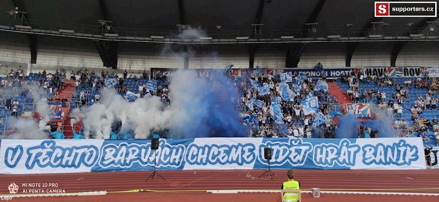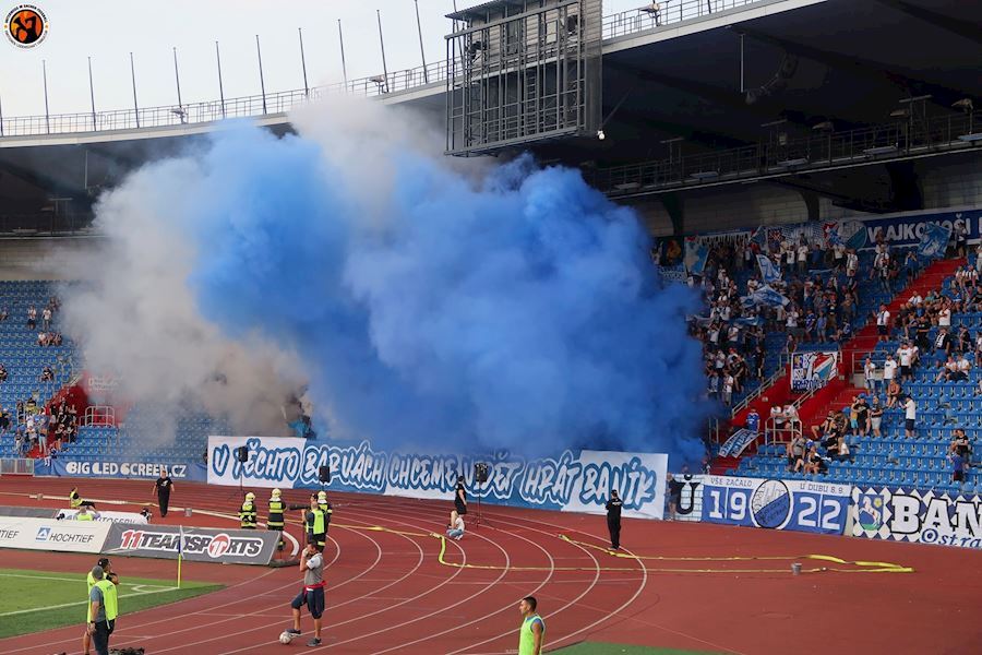 Ostravský Baník hostil ve 2. kole České Budějovice a vyprodaný stadion (3.900 diváků – snížená kapacita kvůli koronaviru) viděl remízu 2:2. Domácí fanoušci ve druhém poločase zahajují desinfekci stadionu pomocí pyrotechniky a Baník následně vyrovnává.