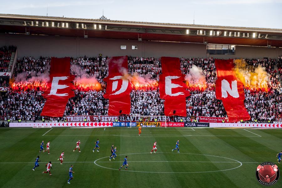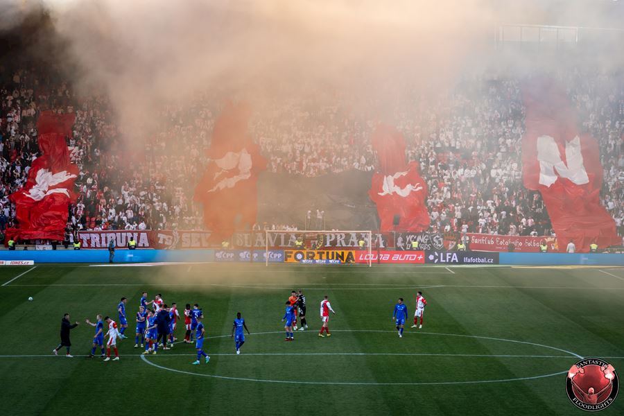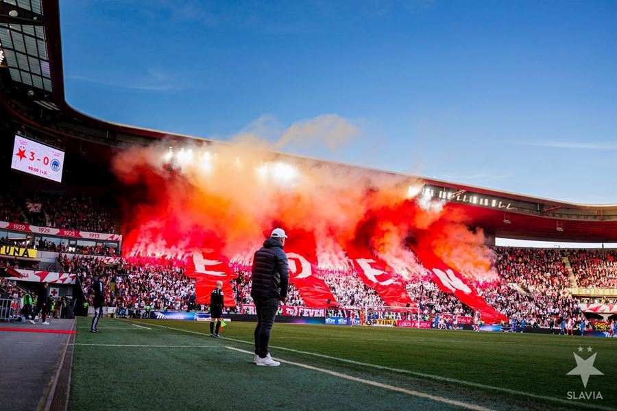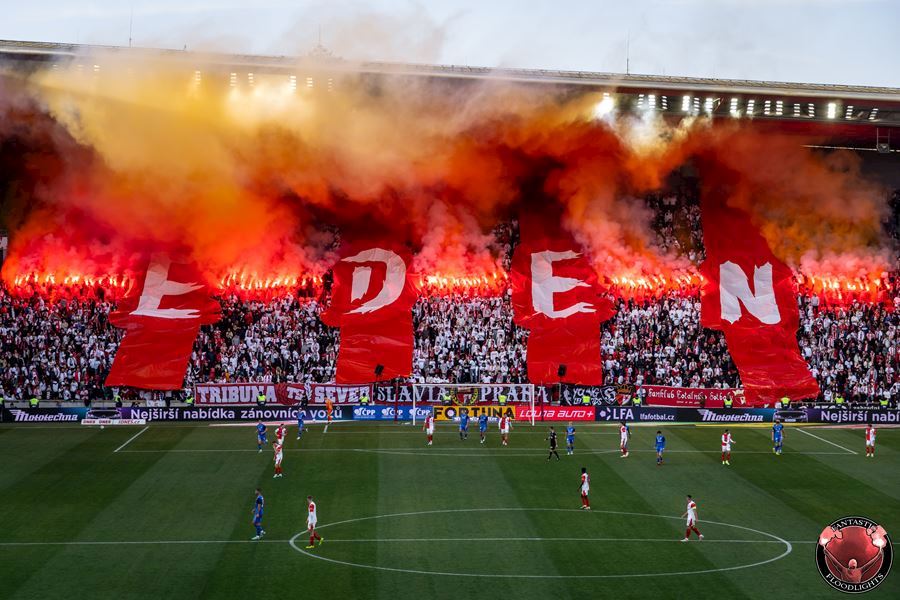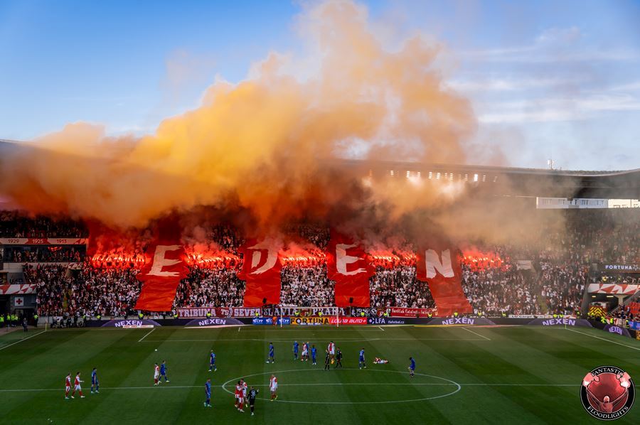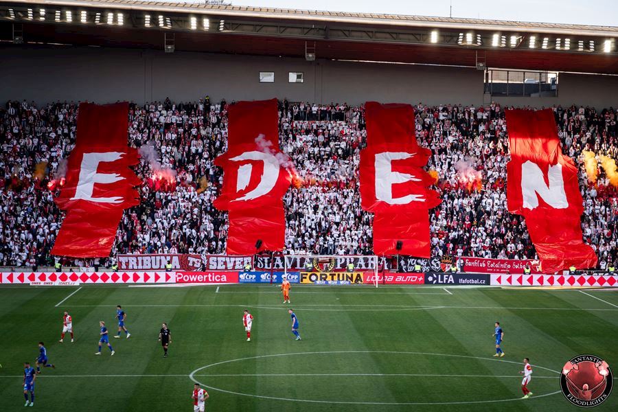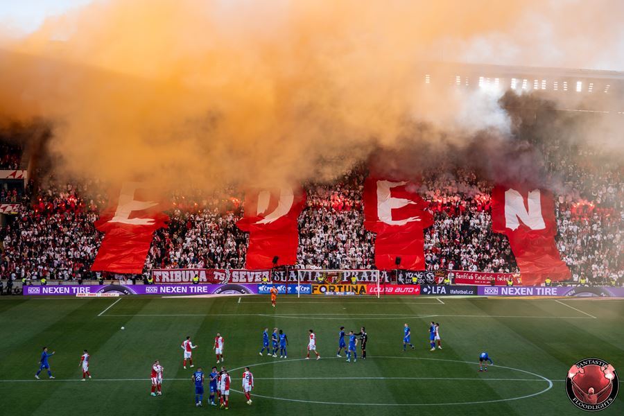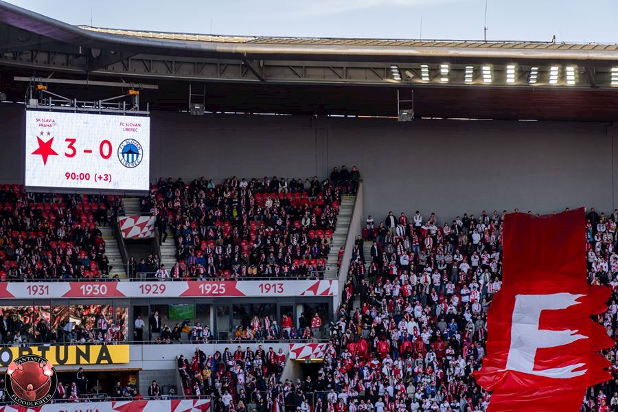 Eden opět v plamenech. Pyrotechnická jednotka sešívaných v zápase s Libercem opět úřadovala. Znak Slovanu bez Ještědu? V žádném případě! Výhru Slavie nad Libercem 3:0 sledovalo 17.513 diváků včetně více jak 100 fanoušků v sektoru hostů.