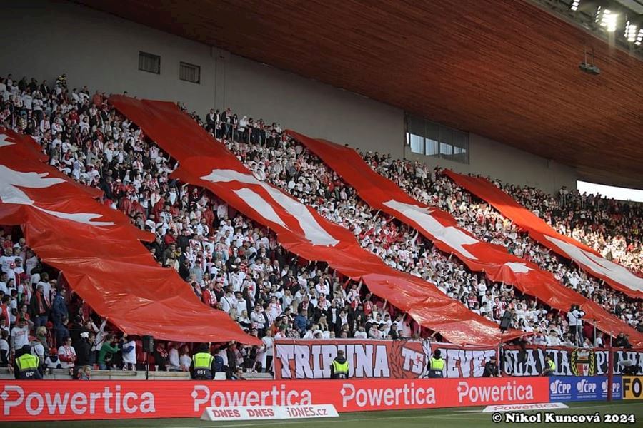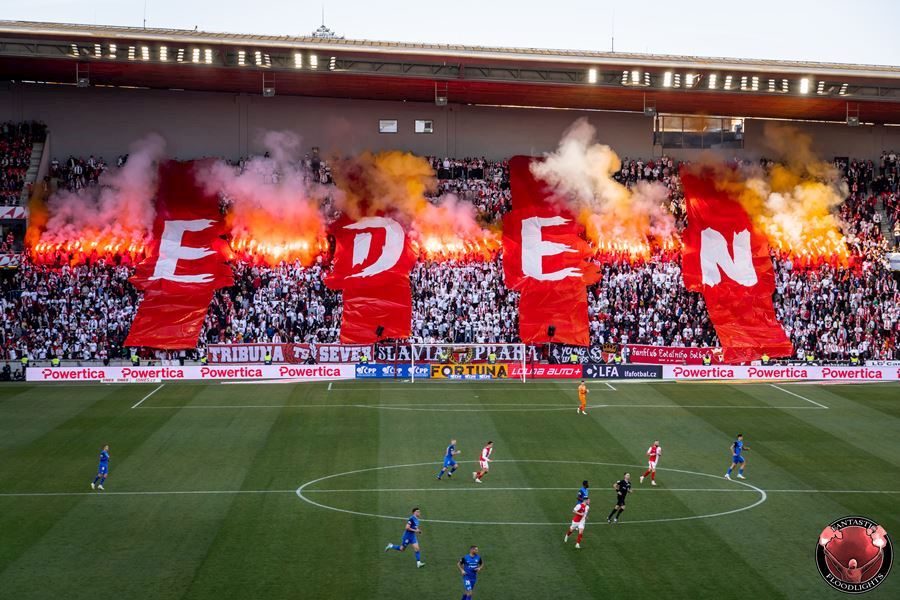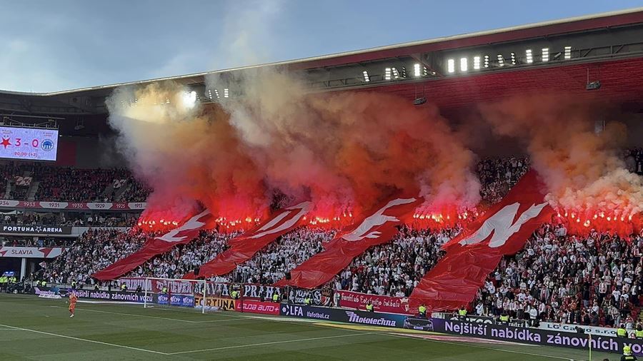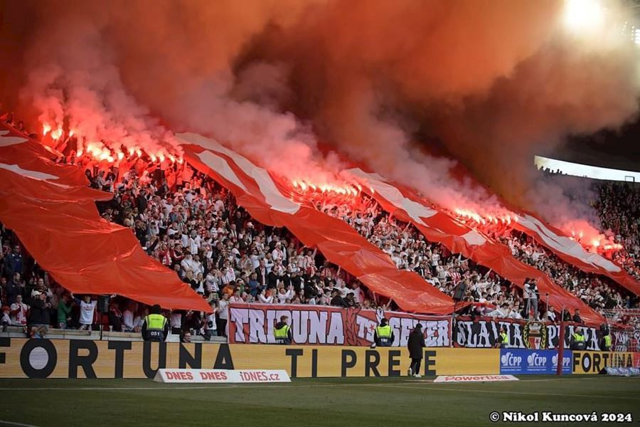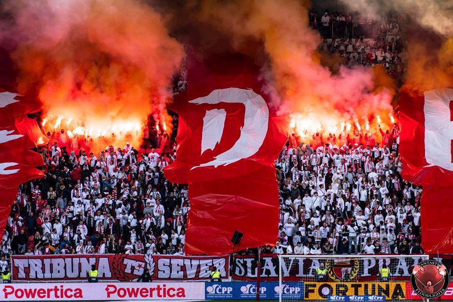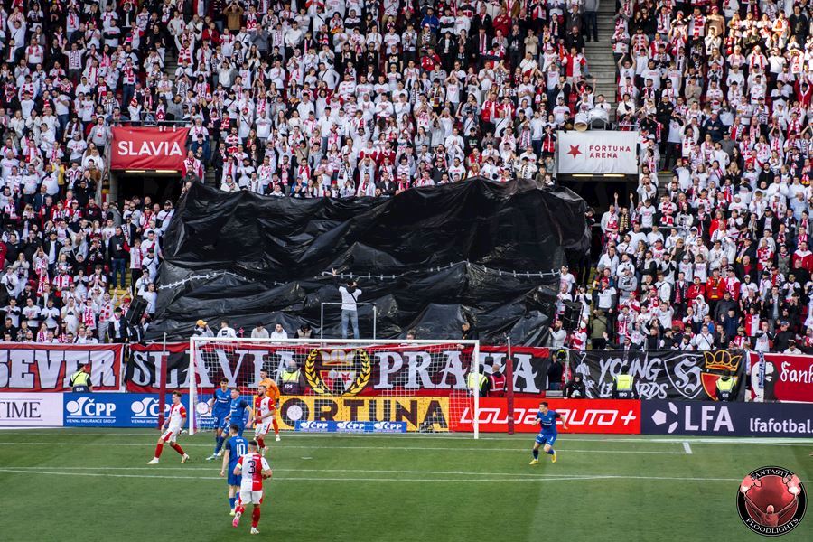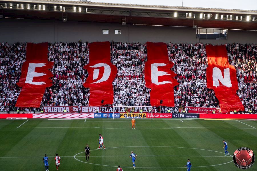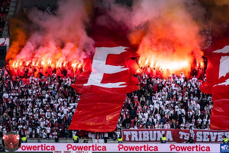 Eden opět v plamenech. Pyrotechnická jednotka sešívaných v zápase s Libercem opět úřadovala. Znak Slovanu bez Ještědu? V žádném případě! Výhru Slavie nad Libercem 3:0 sledovalo 17.513 diváků včetně více jak 100 fanoušků v sektoru hostů.