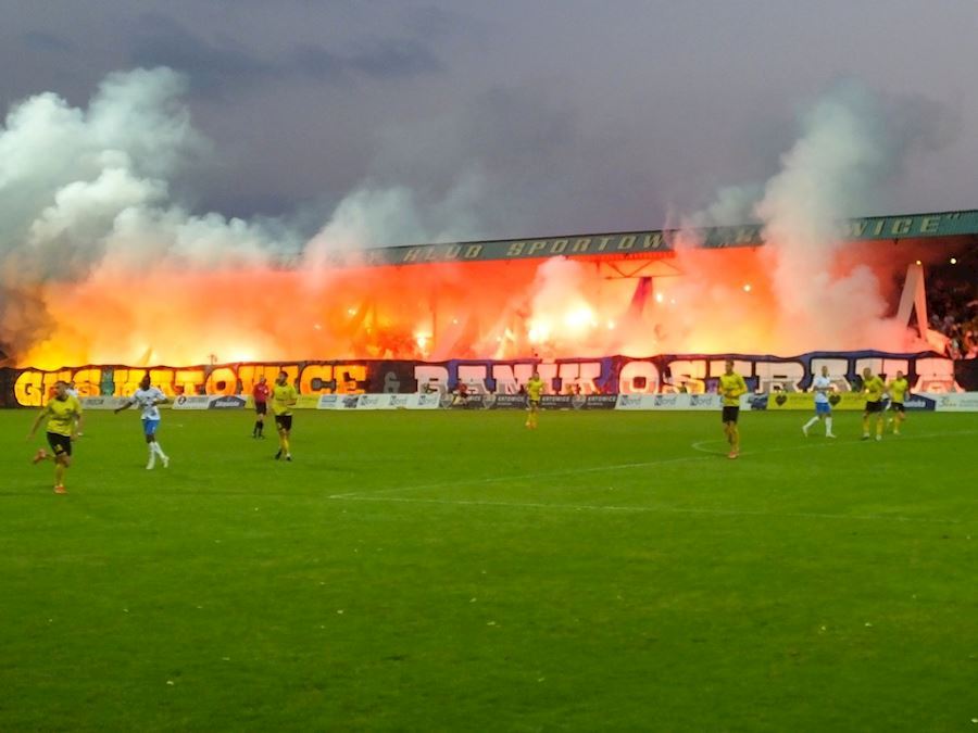 Družba mezi GieKSou a Baníkem trvá již 25 let a fanoušci obou táborů si udělali rodinnou oslavu ve velkém stylu při přípravném zápase mezi GKS a FCB (0:2). Vynikající atmosféra, choreografie, společné chorály a kvantum pyrotechniky...