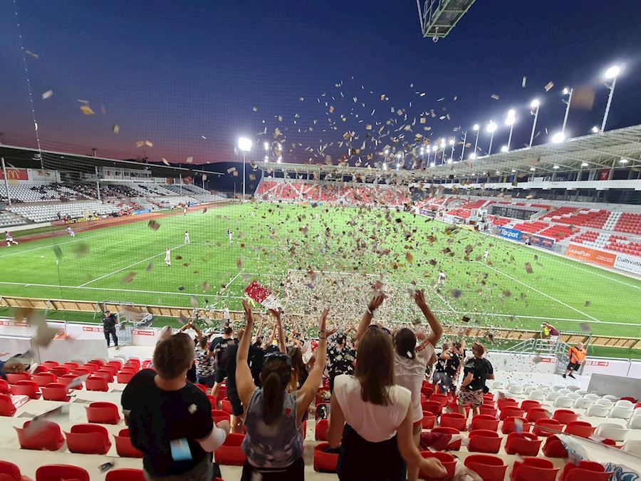 Fanoušci Trenčína si mohou vychutnávat svůj nový stadion a na první utkání sezony vyrazili lodí. Následně zamířili do sektoru na novém stadionu, kde mohli oslavit v prvním ligovém kole výhru 4:0.