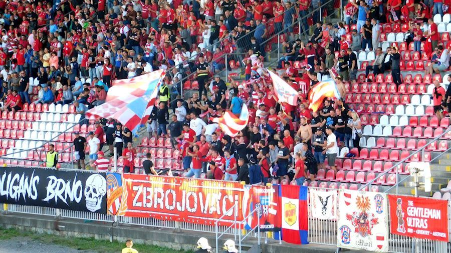 Utkání mezi Zbrojovkou Brno a Sigmou Olomouc sledovalo na stadionu Na Srbské 4.187 diváků včetně cca 70 fanoušků Olomouce, kteří nakonec mohli slavit výhru 4:2.