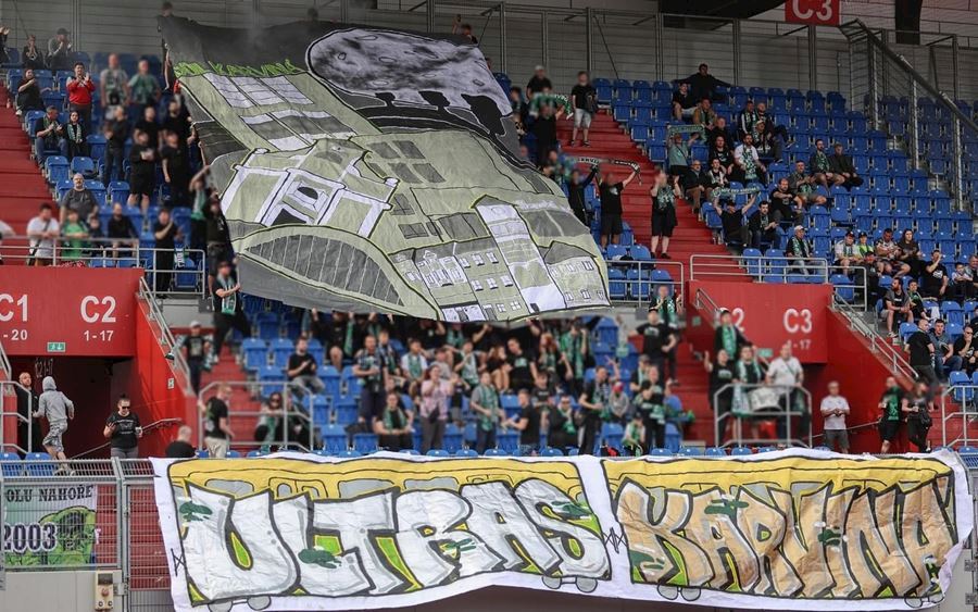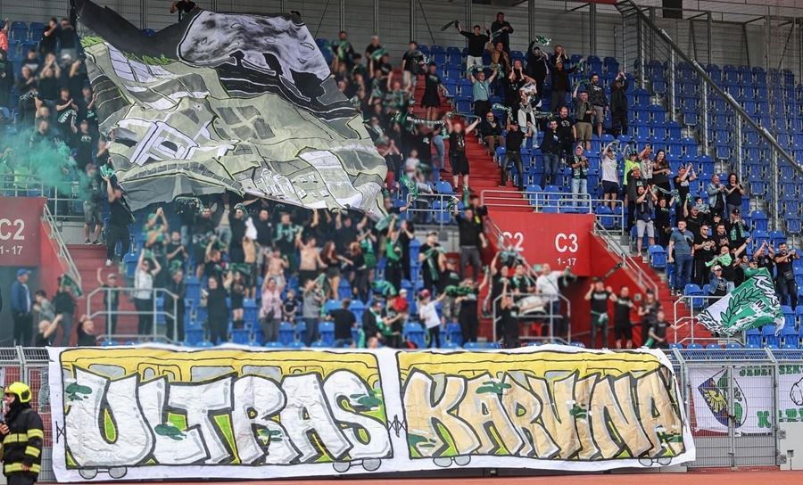 Chachaři si připomněli 20 let od posledního titulu... Na hornické derby dohlížel i Radegast. Karviňáci vzpomněli důlní neštěstí a vytáhli choreo s dominanty Karviné...