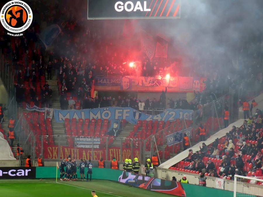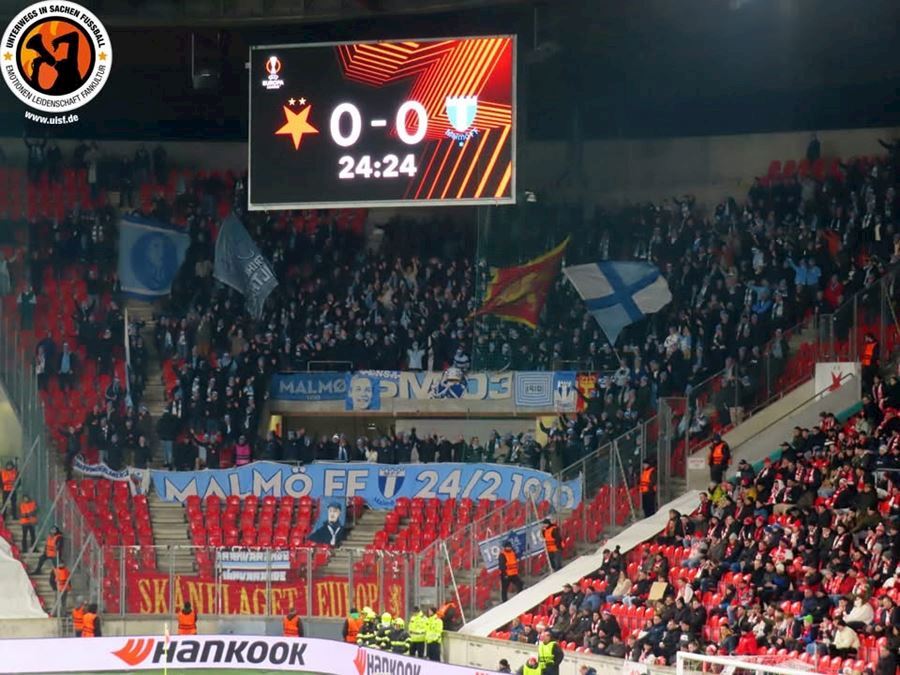 Hráči Slavie přání fanoušků z Tribuny Sever nevyslyšeli. Eden se ale s Evropou rozloučil důstojně. V obou sektorech choreo a ultras Malmo i přisvítili.