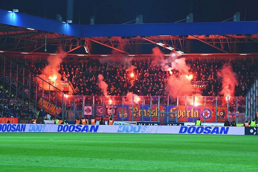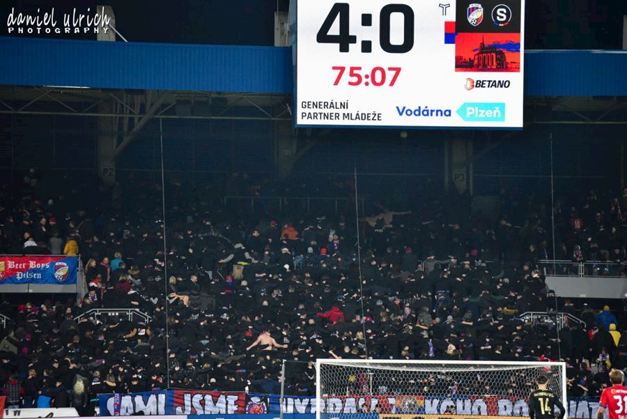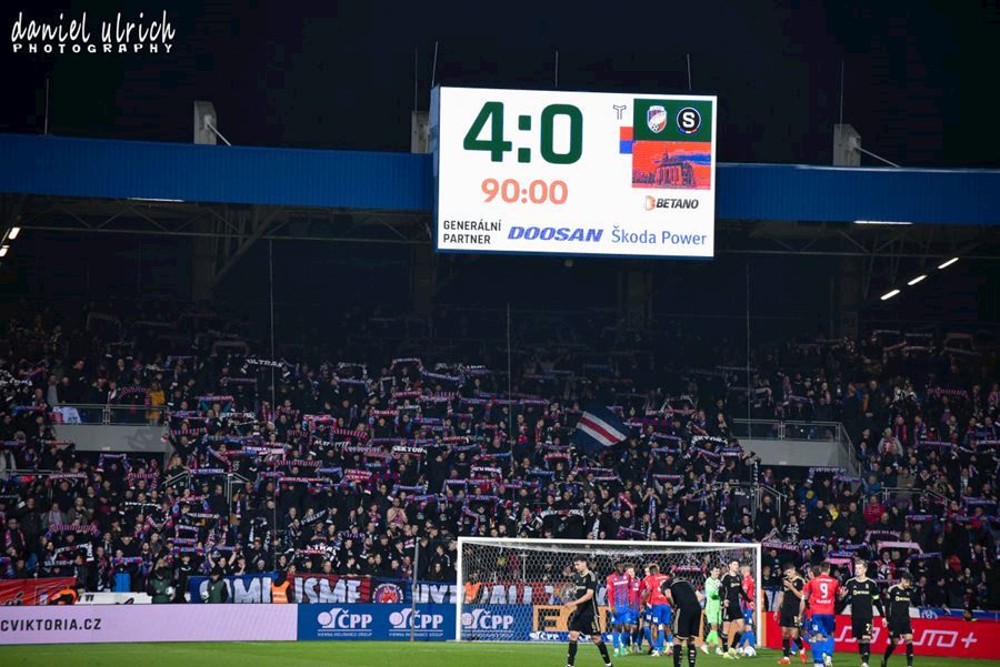 Hřbitov vašich nadějí a stále věříme, vzkázali ultras plzeňské Viktorie v zápase s vedoucí Spartou. Na výhru 4:0 si Sektor-P přisvítil pyrem. Pálilo se i ve vyprodaném sektoru Sparty. Utkání Sledovao 11.611 diváků.