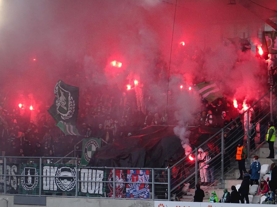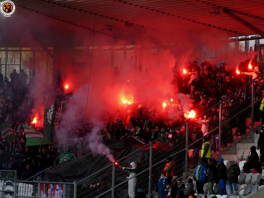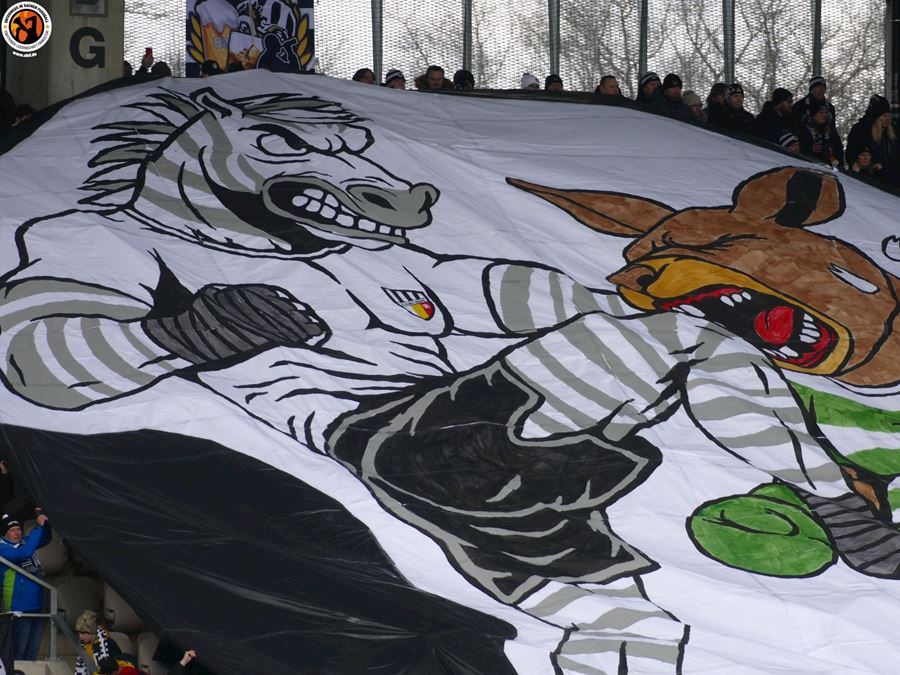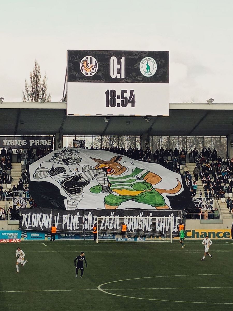 Klokan v plné síle, zažil krušné chvíle. Hradečtí ultras přivítali Bohemku choreem, ale na hřišti se museli oklepávat spíše domácí. Klokani si ve svém sektoru rovněž přisvítili...