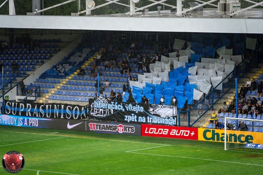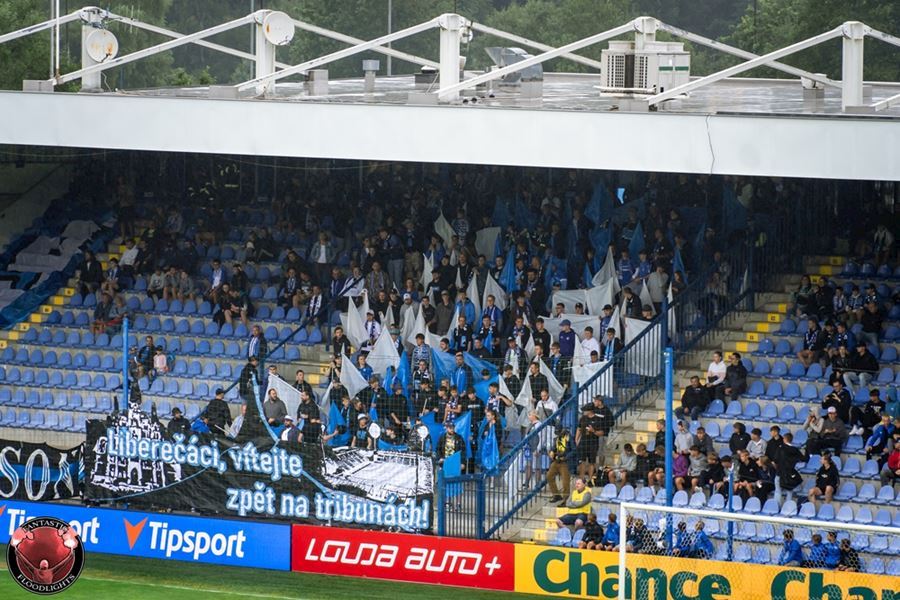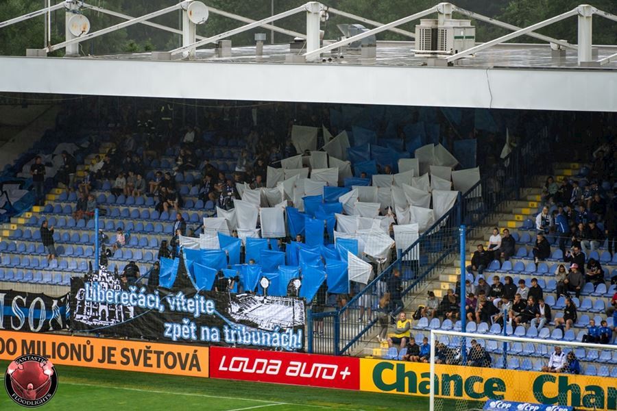 Liberečáci, vítejte zpět na tribunách! Kotel přivítal v zápase se Slávií vyprodané tribuny. K zaplnění přispěli ale i fanoušci Slavie, kteří zaplnili nejen tribunu za brankou. Utkání sledovalo 9.011 diváků. Z výhry 1:0 se radovali fanoušci sešívaných.