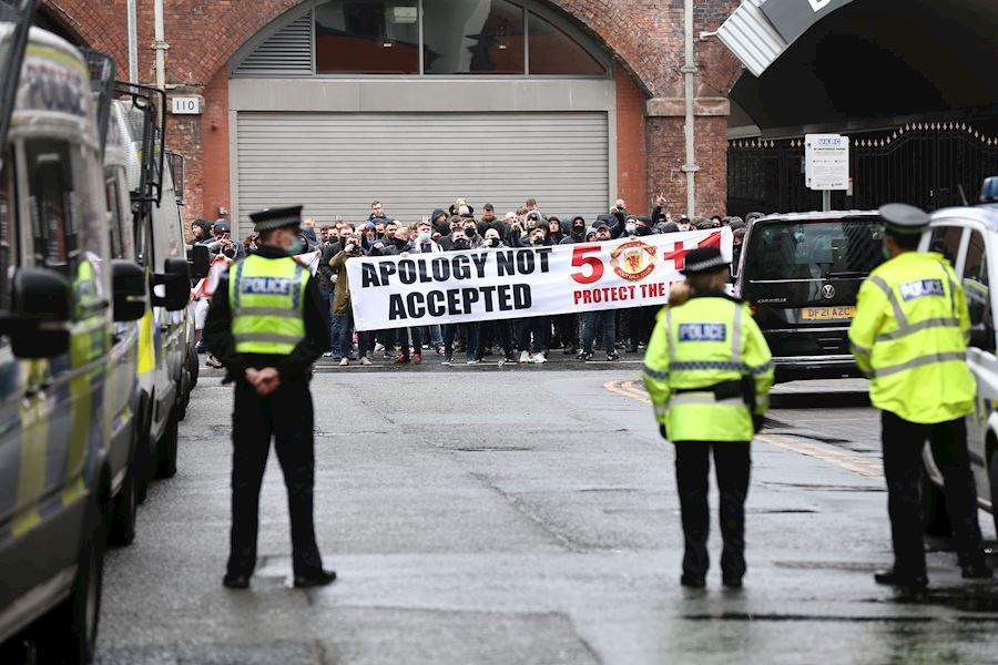 (Vloženo: 2. května 2020 - 20:57) Dnes před očekávaným výkopem utkání Premier League mezi Manchesterem United a Liverpoolem se shromáždily tisíce frustrovaných fanoušků United před stadionem Old Trafford, aby protestovali proti vlastnictví rodiny Glazerů.