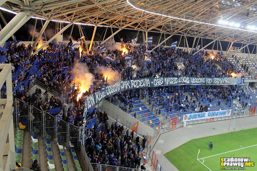 Cez víkend hral Ruch v Bielsku Biala s miestnym Rekordom. Hosťujúci fanúšikovia vytvorili hráčom Ruchu Chorzów domácu atmosféru, v sektore hostí bolo takmer 2000 "belasých" fanatikov. Okrem iného sa mohli spolahnúť na podporu fanúšikov Wisly Krakow či Unie Oswiecim. Ako tomu pri zápasoch Ruchu býva zvykom, nechýbalo ani množstvo pyra a choreo. Fanúšikovia z Chorzówa nakoniec dotlačili ich tím k výhre 2:1.
