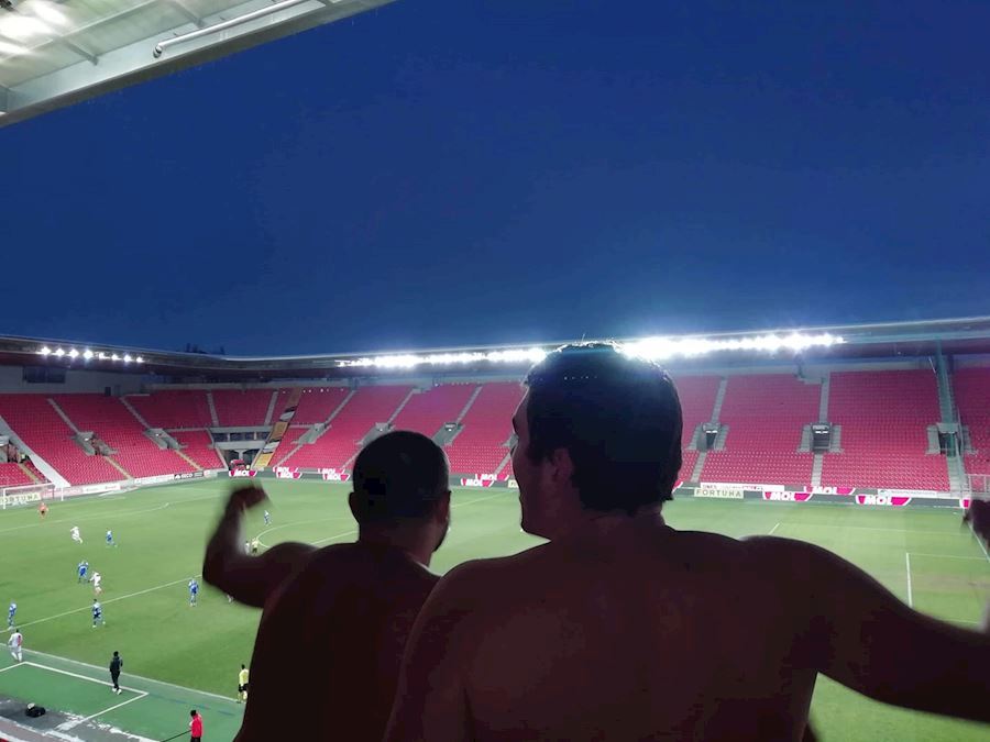 Okolo 75. minuty přijíždí hlídka podruhé kdy nas nakonec vyzývá místo opustit, za vstřícné chování strážníků se tedy balíme a přecházíme jen o kus dále. Tam už nám sami strážníci říkají, že zde už můžeme zápas dokoukat do konce a nikdo nás tu nebude rušit.
