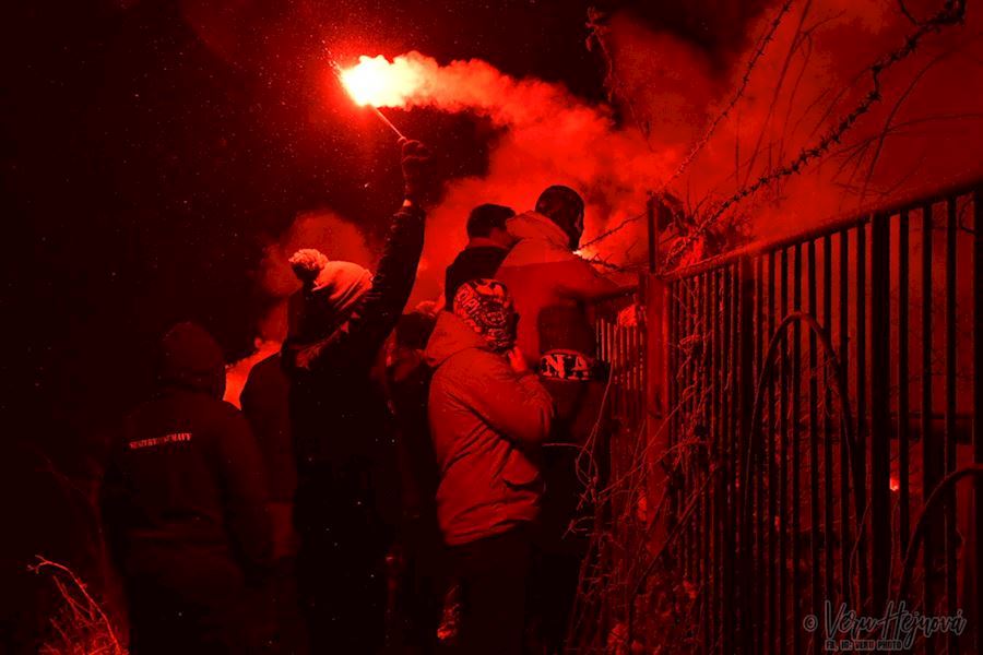 Hned několik táborů vyjelo podpořit své týmy a nechyběla ani pyrotechnika...