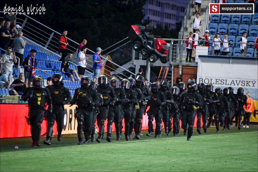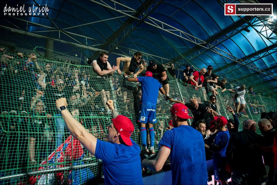 "Na poslední "domácí" utkání je v Mladé Boleslavi poměrně slušně zaplněný stadion. Nás se v sektoru schází celkem dost, ale po pár minutách zjišťujeme, že se jedná o čumily. Do samotného fandění se tedy zapojuje zhruba padesátka aktivních. Ve druhé půli roztahujeme plachtu s několika milníky a poděkováním našim hráčům za úspěšnou sezónu."