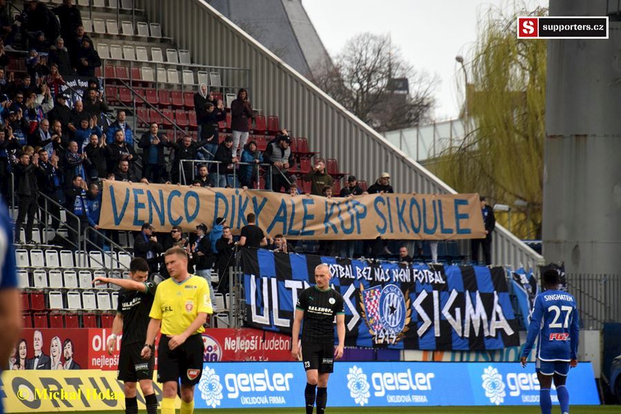 Početný výjezd klokanů a koule pro trenéra... Více jak dvě stovky fanoušků dorazilo podpořit Bohemku do Olomouce. Domácí ultras poděkovali bývalému trenérovi s doporučením koupit si koule. Remízu 2:2 sledovalo v Olomouci 3478 diváků.