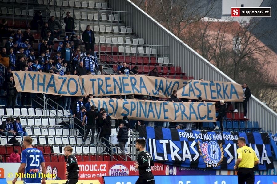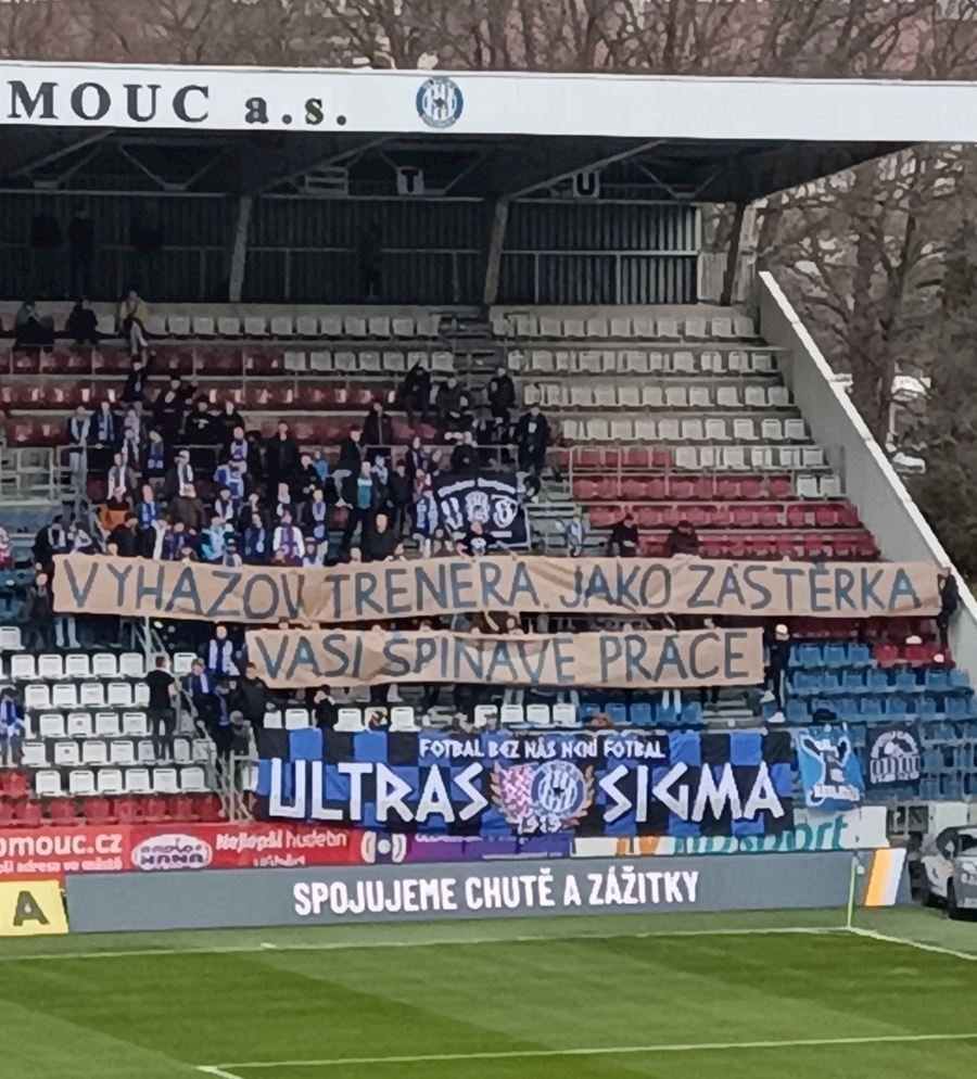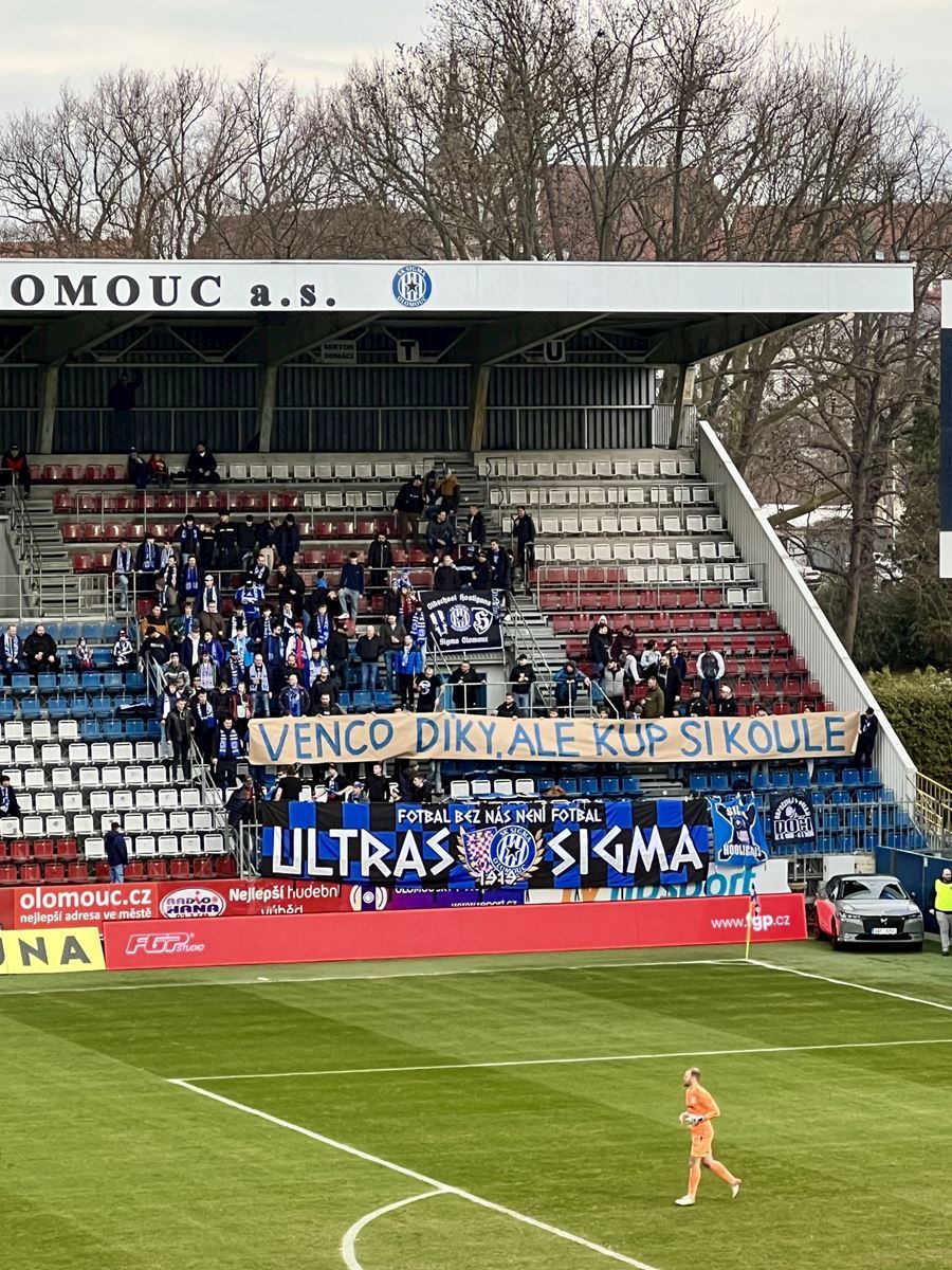 Početný výjezd klokanů a koule pro trenéra... Více jak dvě stovky fanoušků dorazilo podpořit Bohemku do Olomouce. Domácí ultras poděkovali trenérovi se vzkazem kup si koule