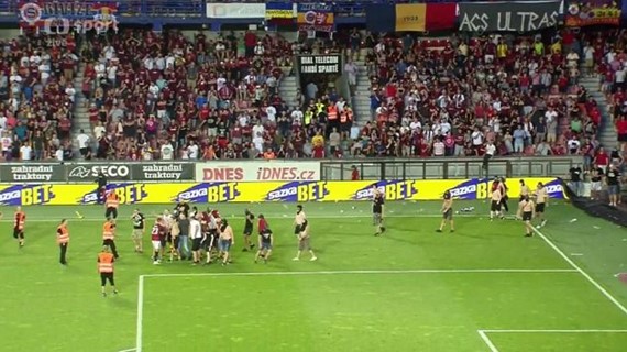 Za výtržnosti fanoušků dostala pražská Sparta pokutu 100.000 € (více jak 2,5 milionu) a navíc další domácí utkání v soutěžích UEFA odehraje pražská Sparta bez fanoušků.