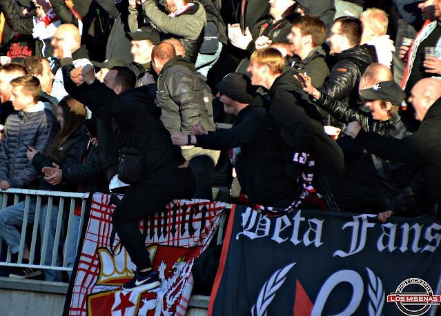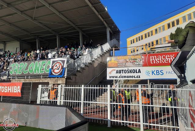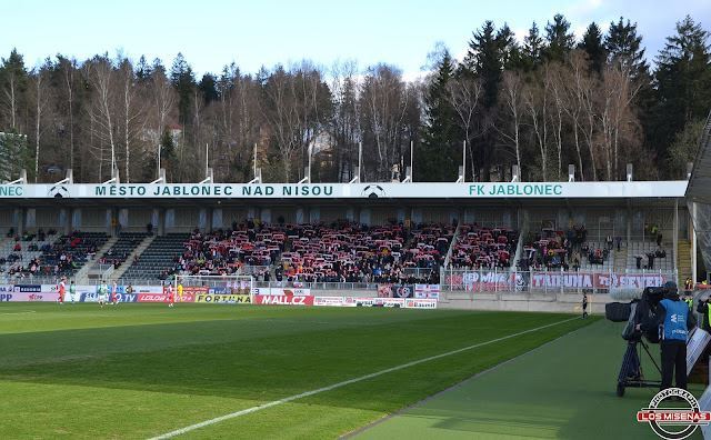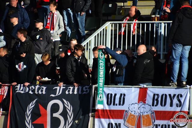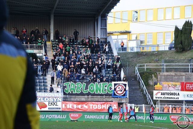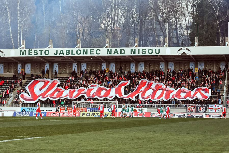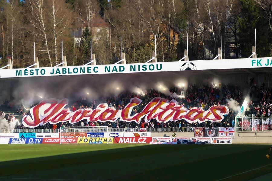 Utkání mezi Jasbloncem a Slavií navštívilo 4.056 diváků včetně několika stovek fanoušků Slavie, kteří si připravili choreo a odpálili pyrotechniku...