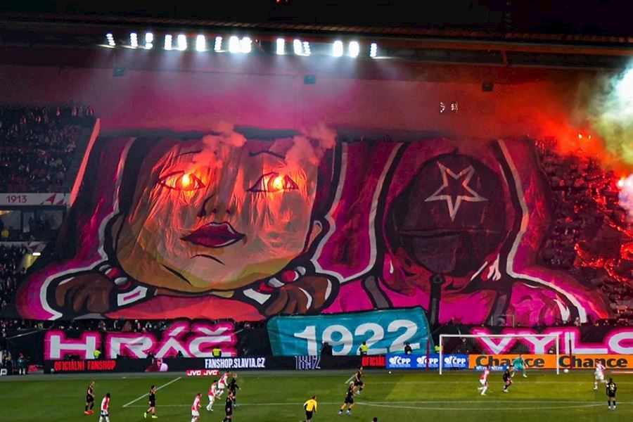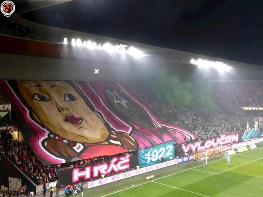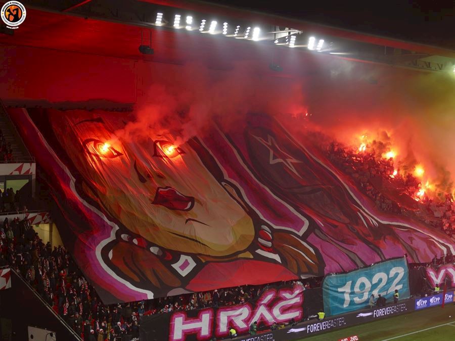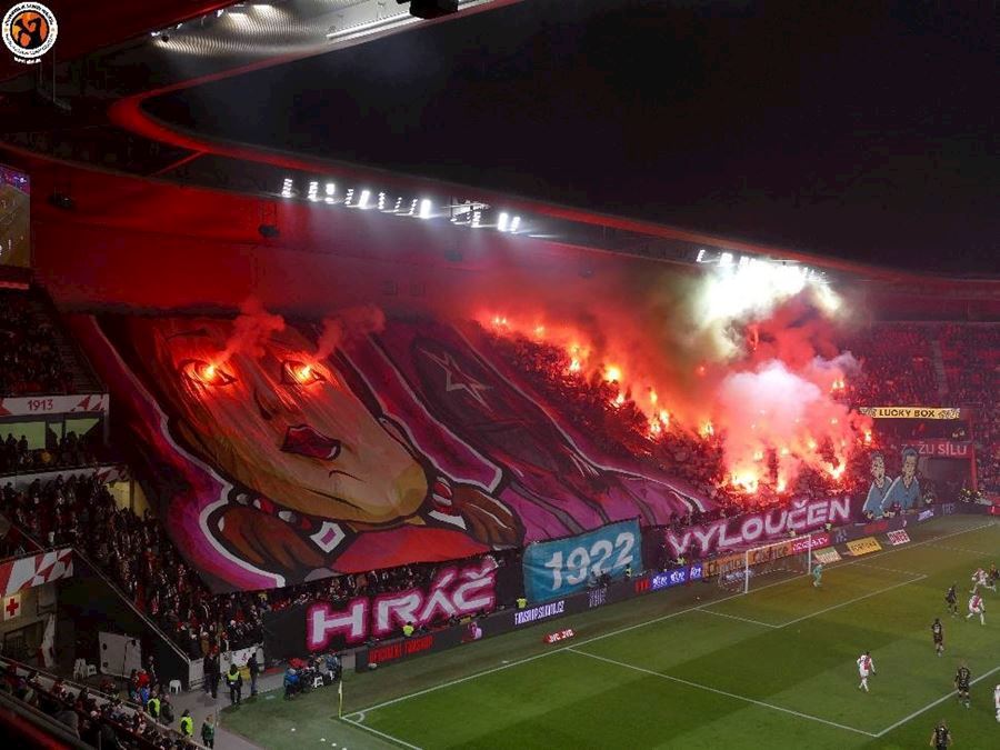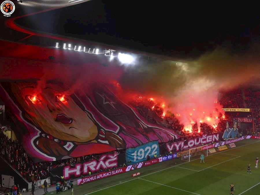 Skvělé, takto má šlágr vypadat! Propracované choreografie na obou stranách a spousta pyrotechniky... Chachaři přijeli vyhodit Eden do vzduchu. Končíte, kontruje Tribuna Sever. Výhru Slavie sledovalo 18.105 diváků, kteří vídí výhru sešívaných 1:0.