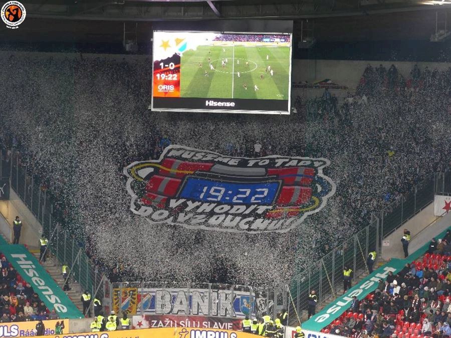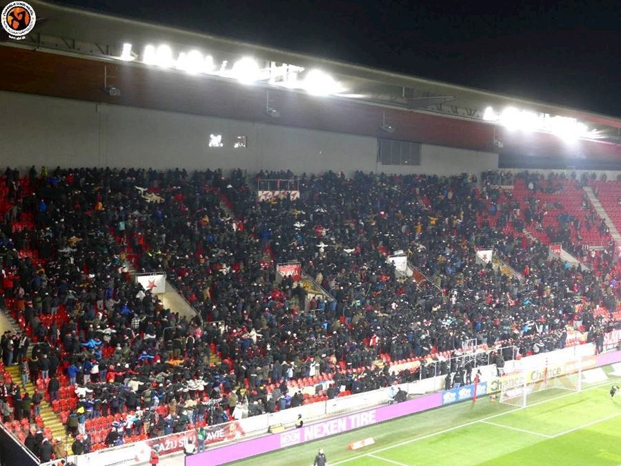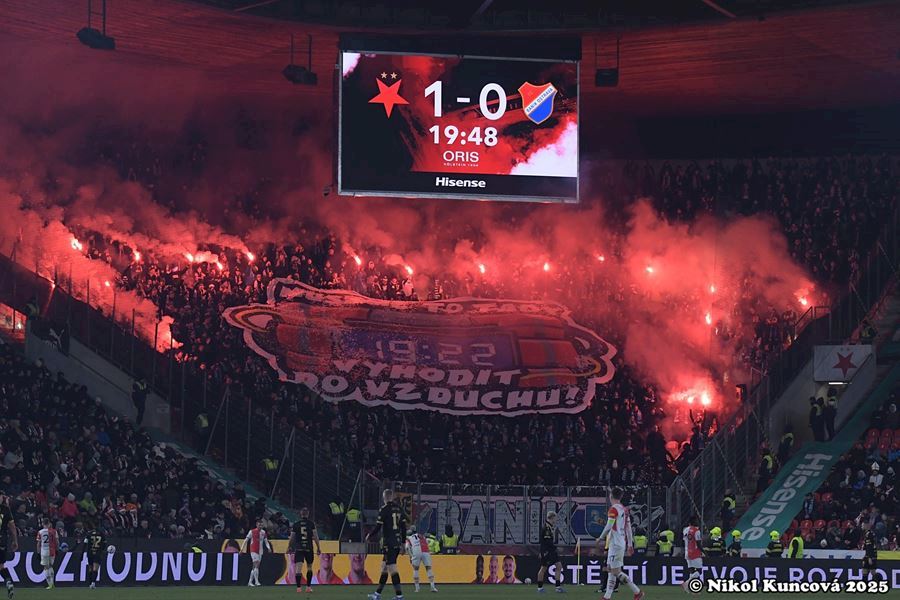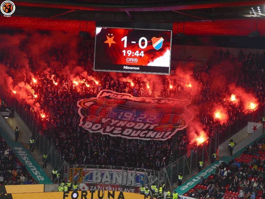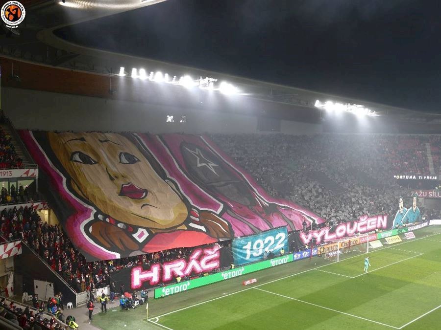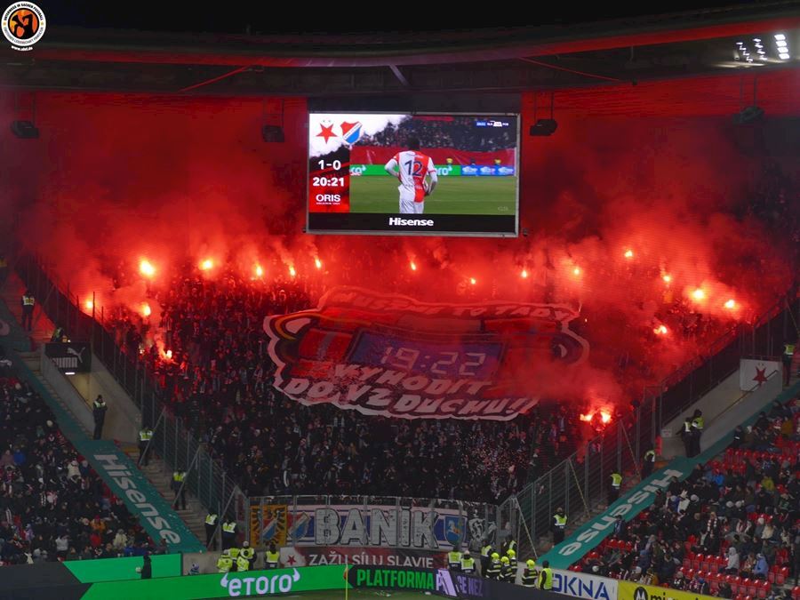 Skvělé, takto má šlágr vypadat! Propracované choreografie na obou stranách a spousta pyrotechniky... Chachaři přijeli vyhodit Eden do vzduchu. Končíte, kontruje Tribuna Sever. Výhru Slavie sledovalo 18.105 diváků, kteří vídí výhru sešívaných 1:0.