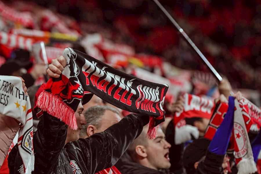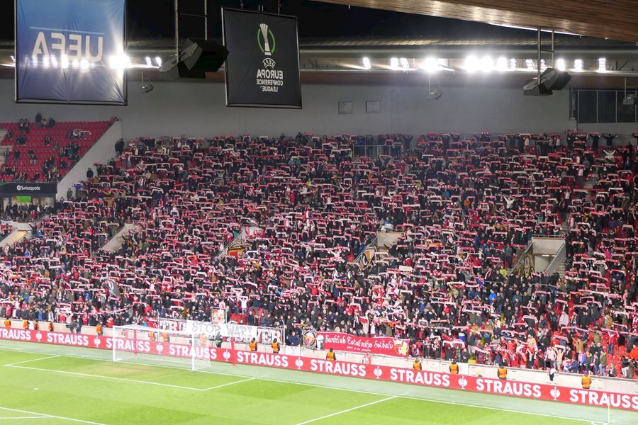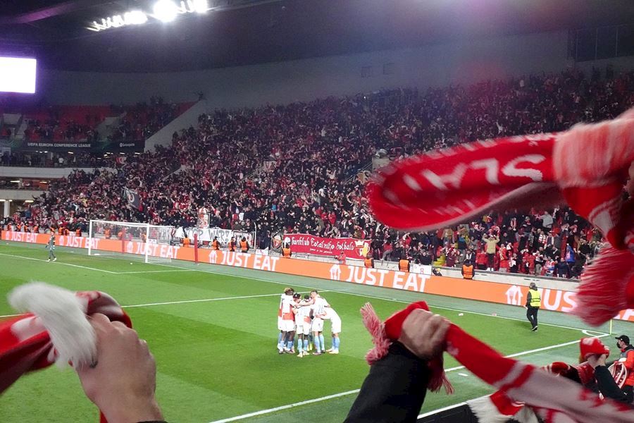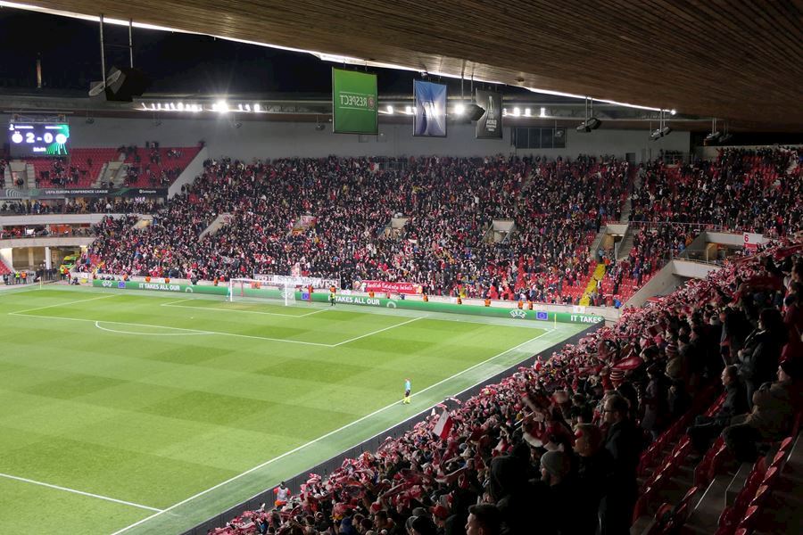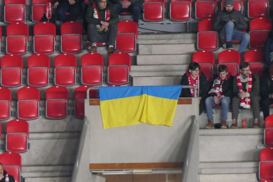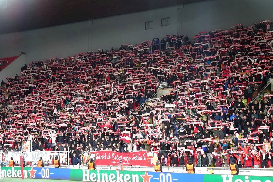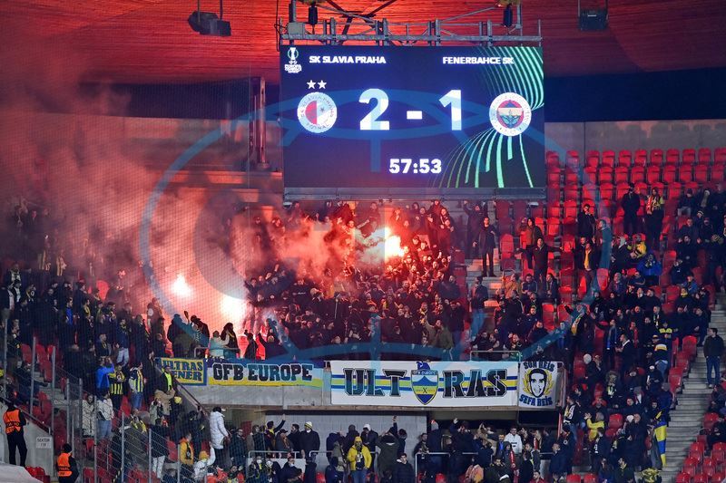 STOP WAR! Eden v zápase Konferenční ligy podpořil Ukrajinu a slavil postup nad tureckým Fenerbahce. Utkání přihlíželo 10.120 diváků. V sektoru hostí byla k vidění pyrotechnika...
