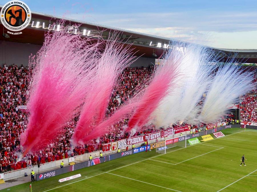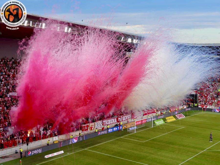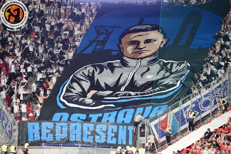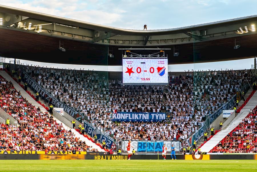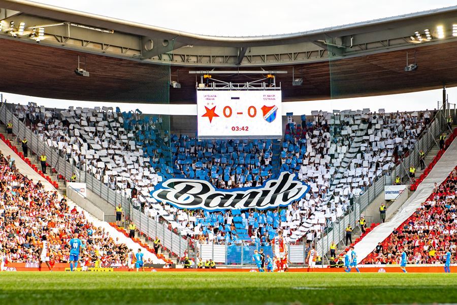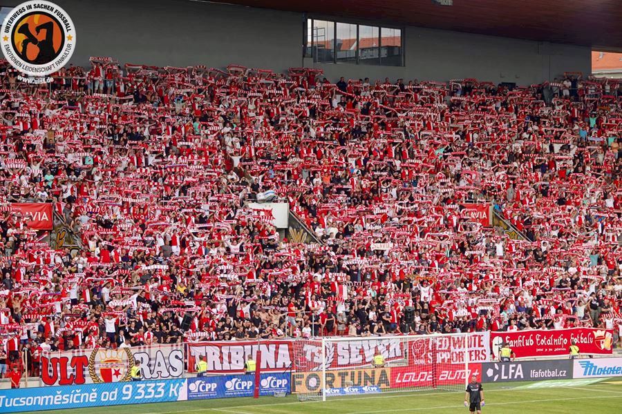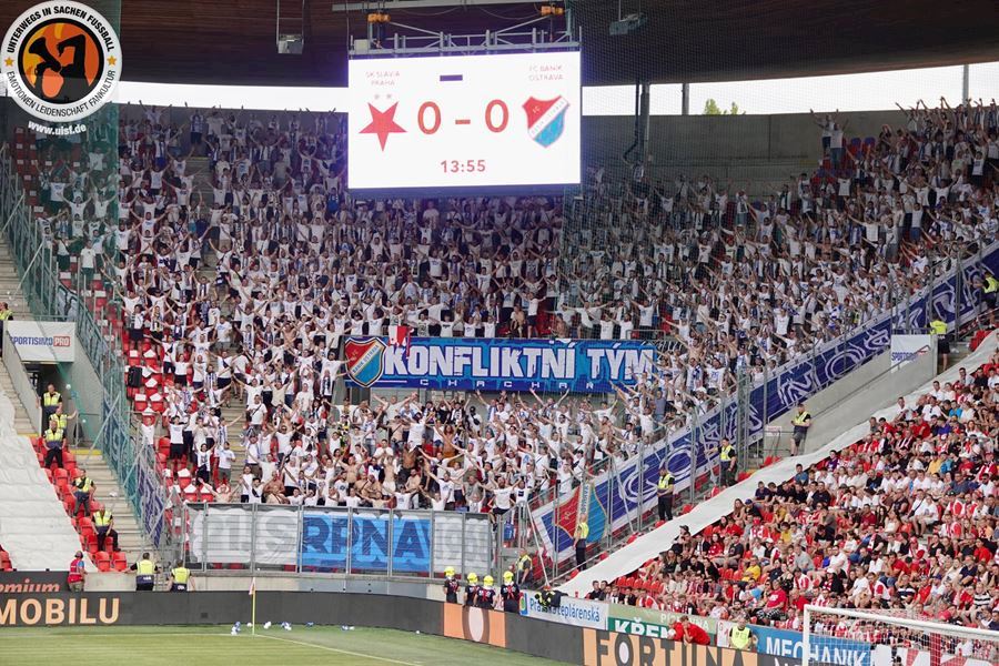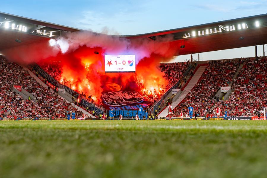 Takto to má vypadat! TS připravila rekordně velkou vlajku, odpálila dýmy a Chachaři si připomněli příjezd zmrdů ze Sovětského svazu v srpnu 1968. Pyro nemohlo chybět. Slavia vyhrála 1:0 a utkání sledovalo 19.164 diváků.