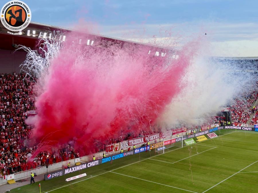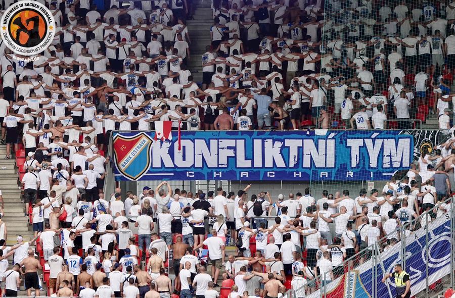 Takto to má vypadat! TS připravila rekordně velkou vlajku, odpálila dýmy a Chachaři si připomněli příjezd Zmrdů ze Sovětského svazu v srpnu 1968. Pyro nemohlo chybět...