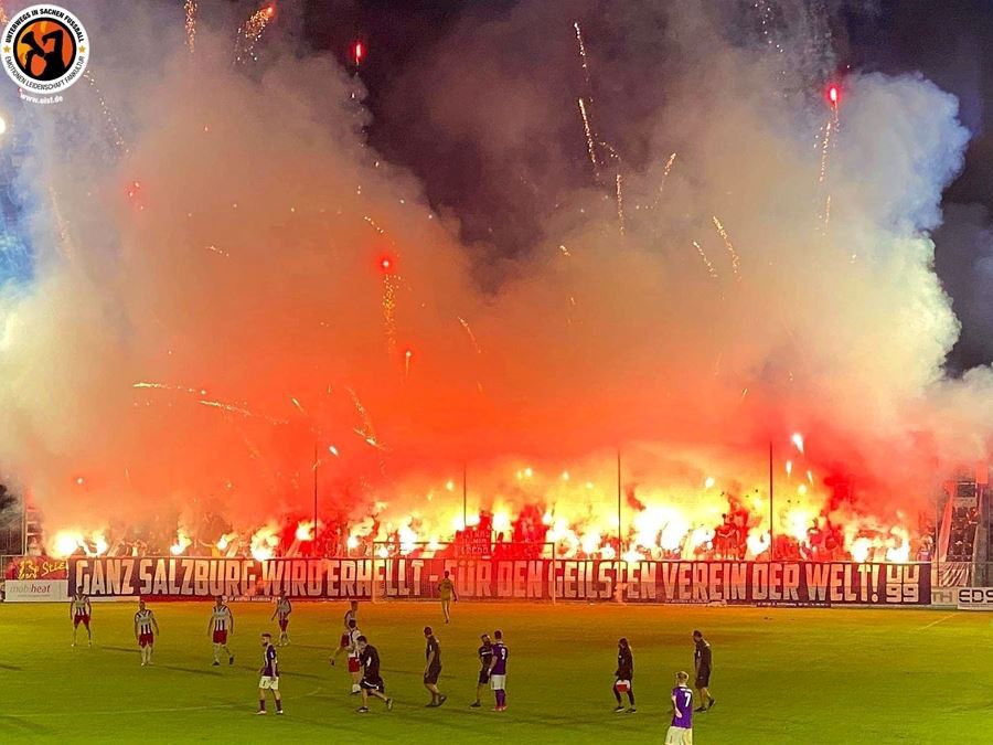 Třetiligový Salzburg otevřel brány pekla. V zápase s SV Seekirchen (1:3) se na stadionu odehrála neuvěřitelná pyrošou. Na stadionu si vůně pyrotechniky užilo 750 diváků včetně 30 hostů.