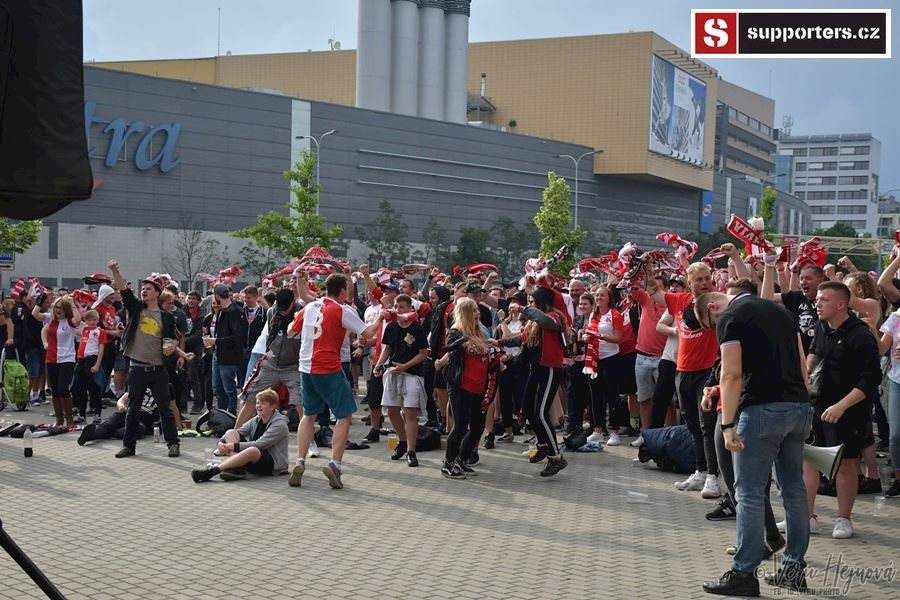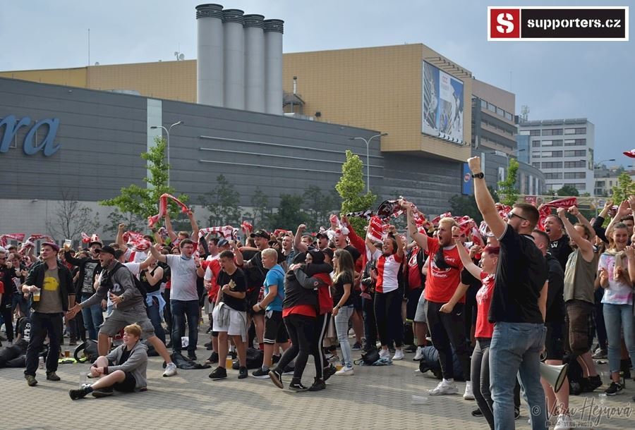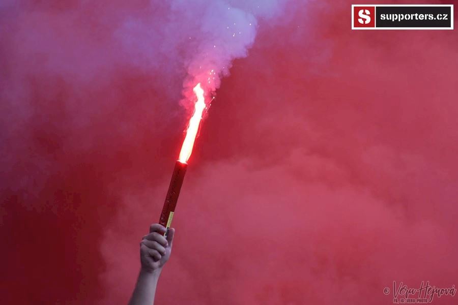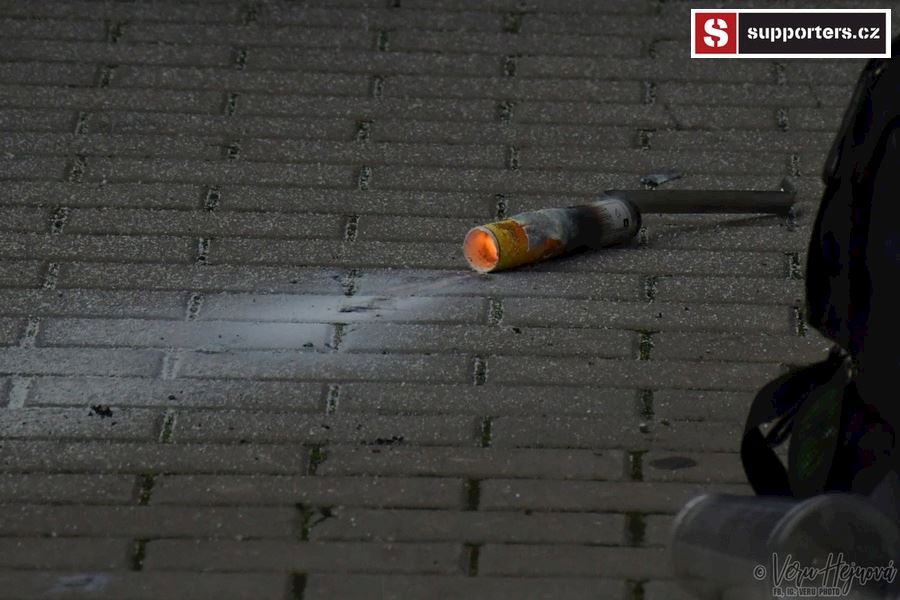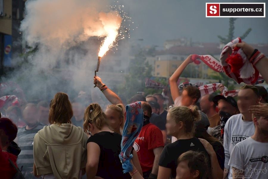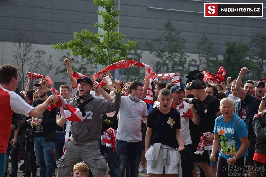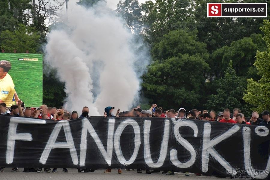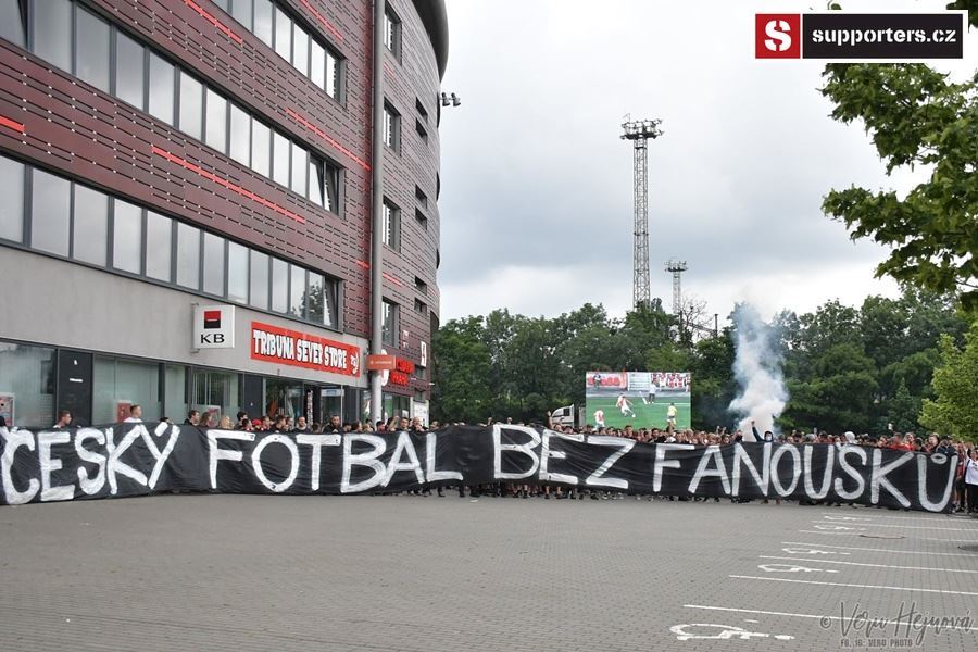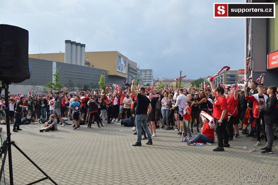 I v posledním ligovém kole se sešli sešívaní příznivci před stadionem v Edenu, kde podporovali Slavii. Při zápase vytahují banner – „Český fotbal bez fanoušků“ a podporu okoření odpálením pyra.
