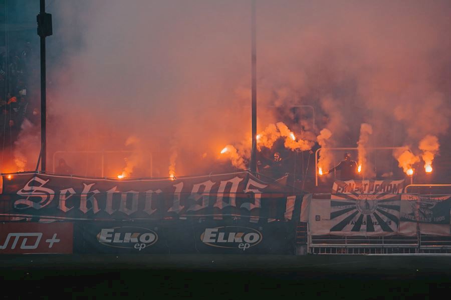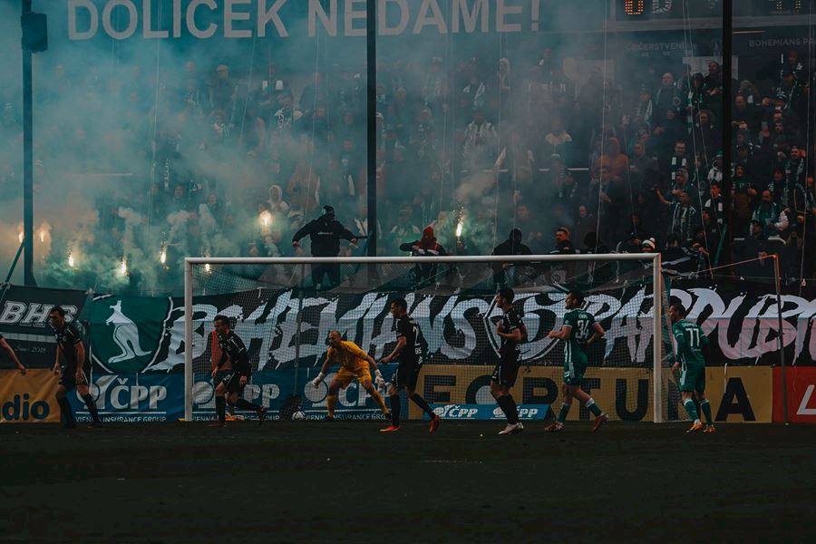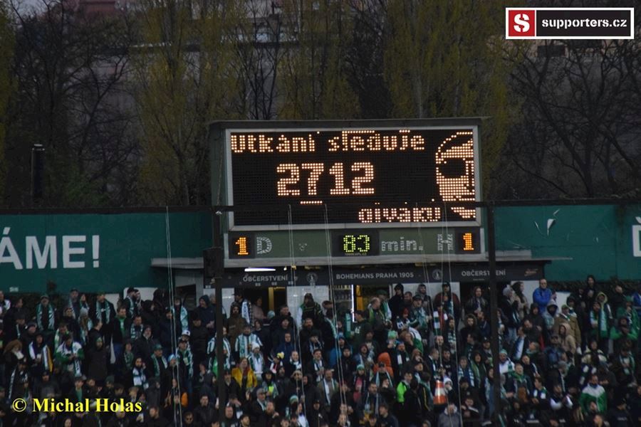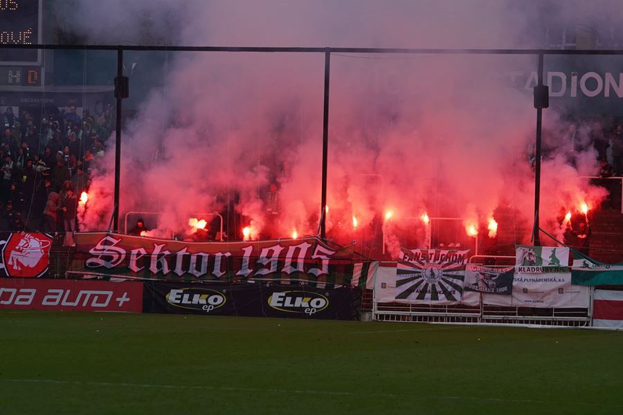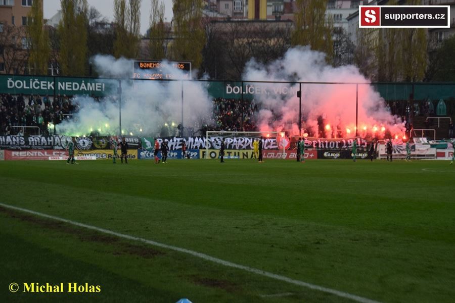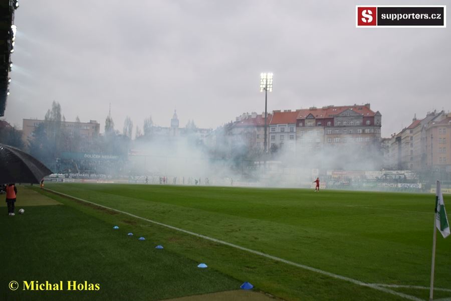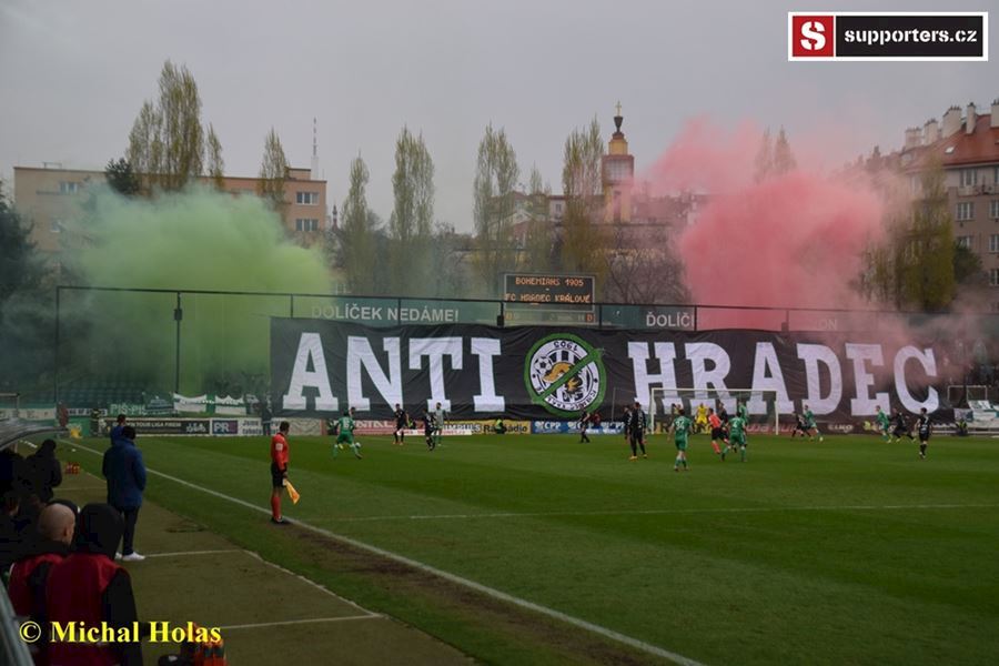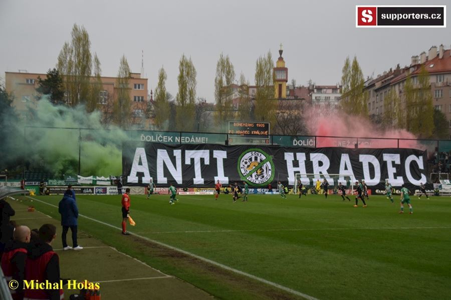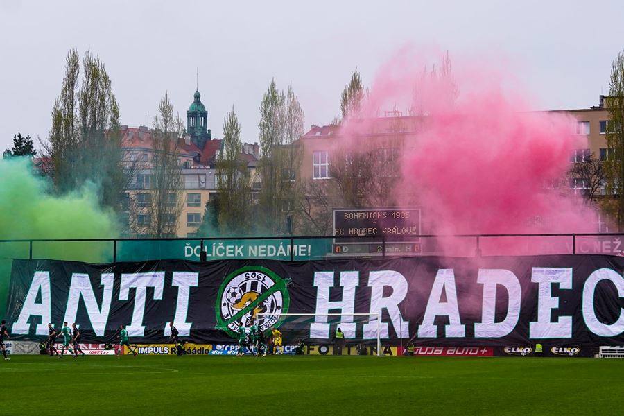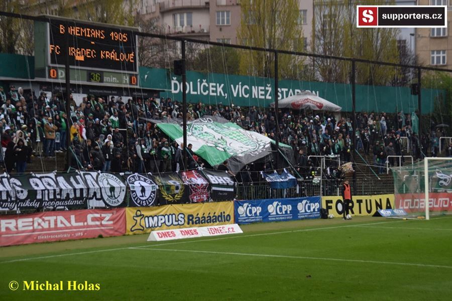 V Ďolíčku ukořistěná vlajka Hradce Králové v sektoru Bohemky, choreo a pyrotechnické vsuvky. Poslední kolo základní části ligy sledovalo 2.712 diváků