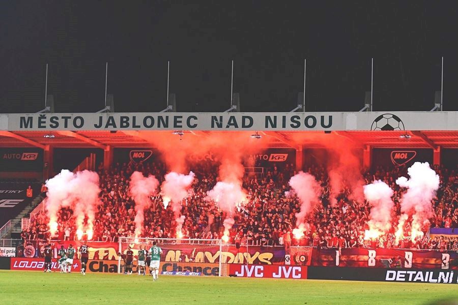 V Jablonci se s Tomášem Hübschmanem loučil vyprodaný stadion. Fanoušci Jablonce si připravili choreografii, výhru okořeněnou pyrem však slavili fanoušci Sparty