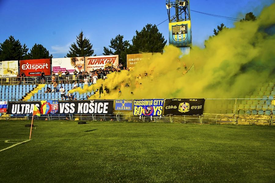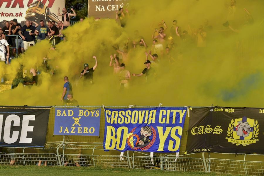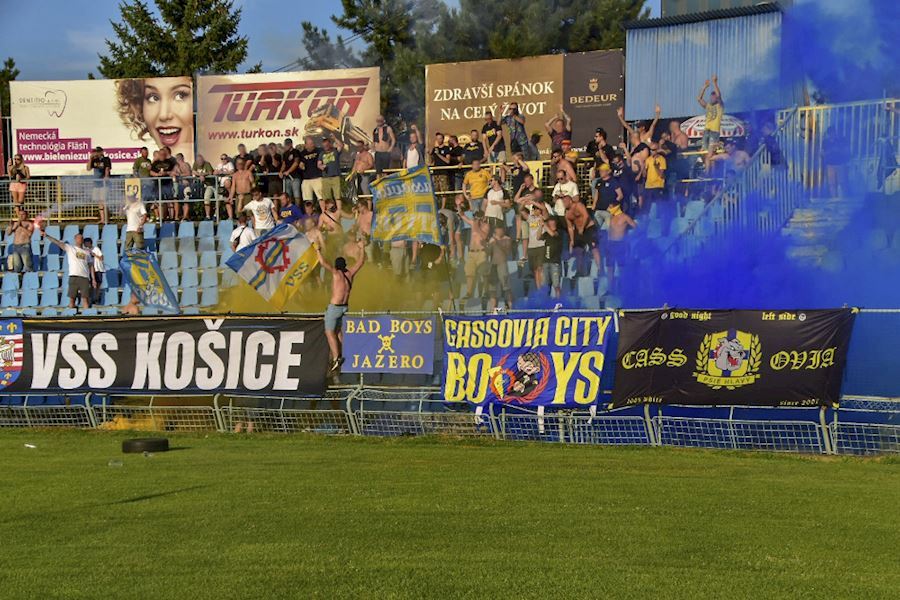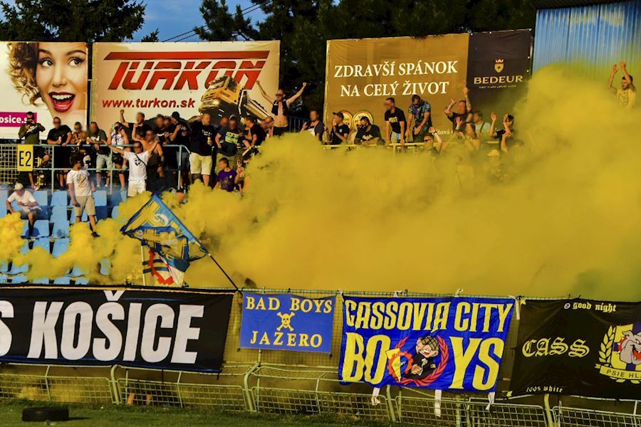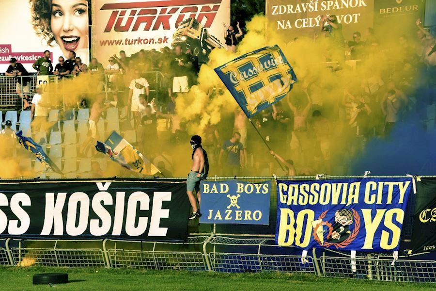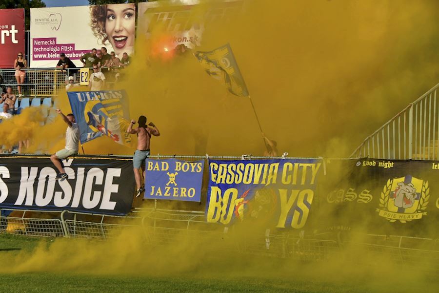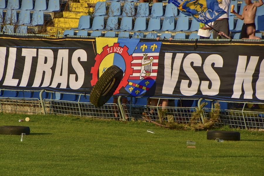 Zajímvé představení bylo k vidění ve 2. slovenské lize v Košicích, kam zavítal Púchov (3:1). Domácí fanoušci se v sektoru dobře baví, odpalují pyro a po zápase ze sektoru letí na hrací plochu staré pneumatiky Matador...