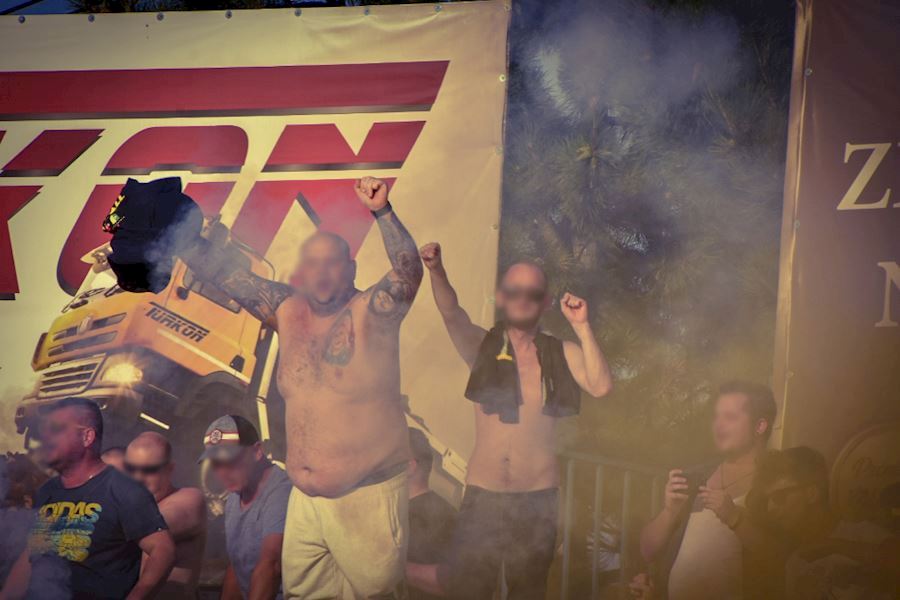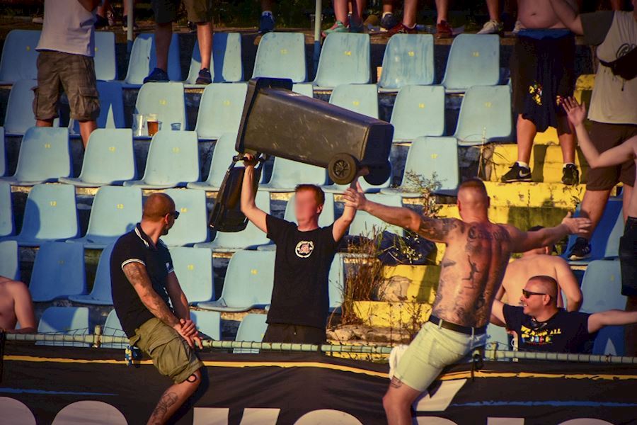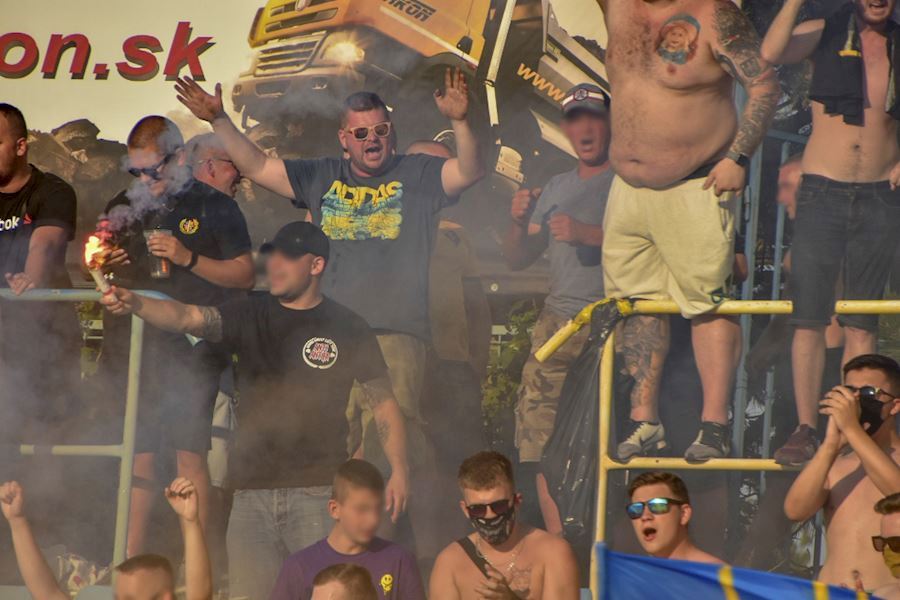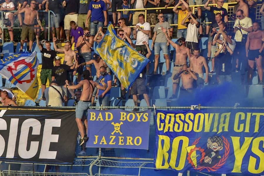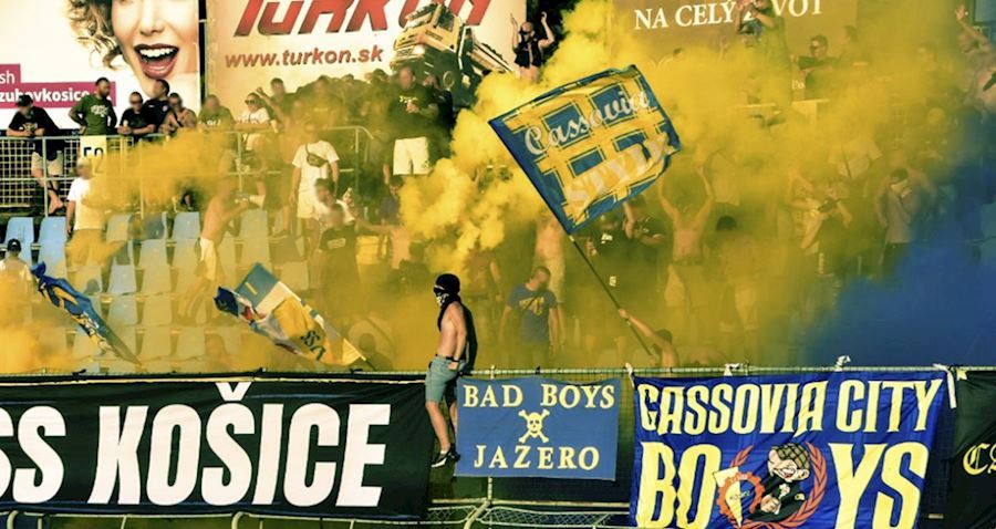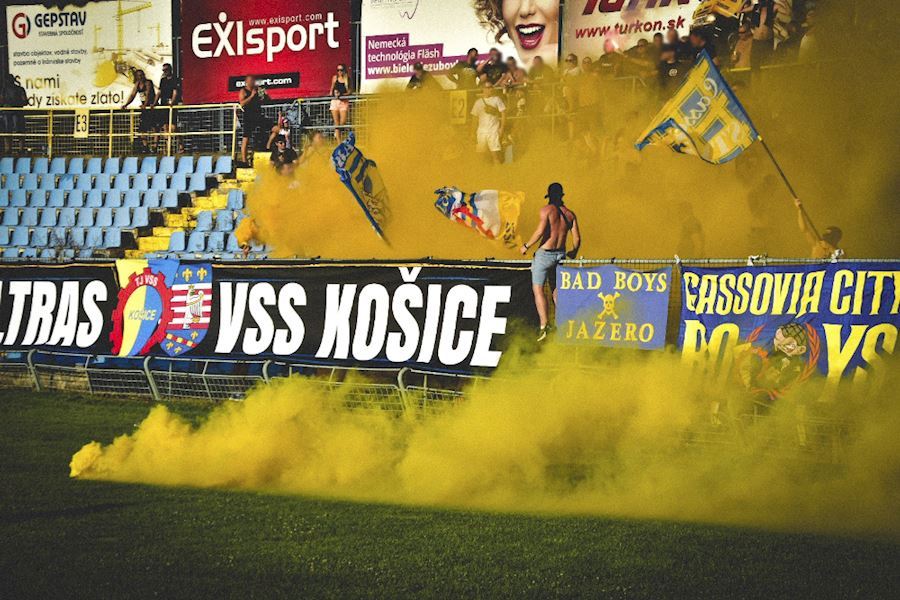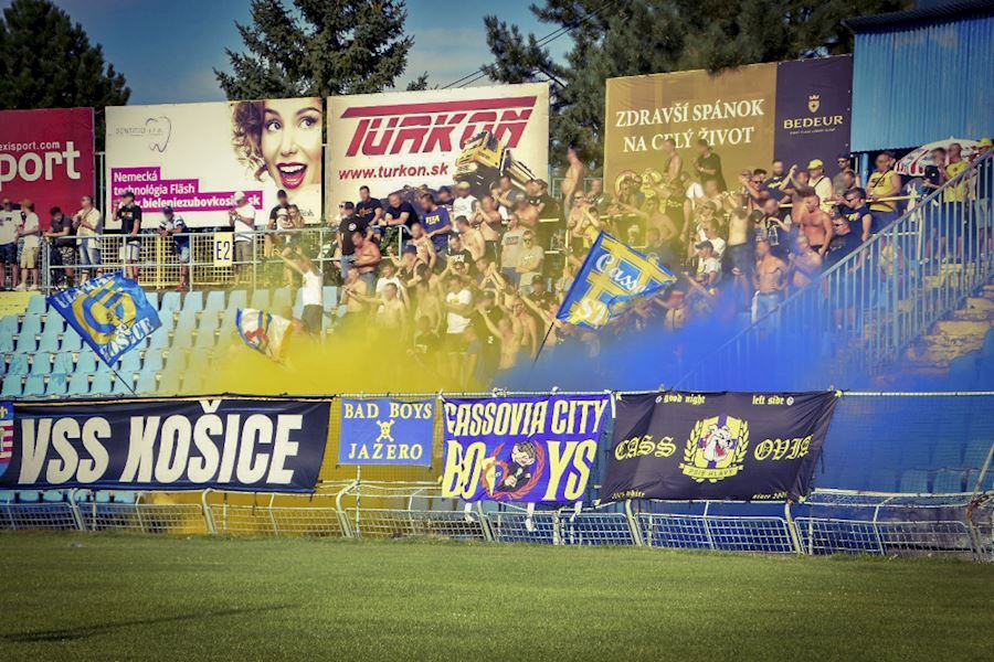 Zajímvé představení bylo k vidění ve 2. slovenské lize v Košicích, kam zavítal Púchov (3:1). Domácí fanoušci se v sektoru dobře baví, odpalují pyro a po zápase ze sektoru letí na hrací plochu staré pneumatiky Matador...