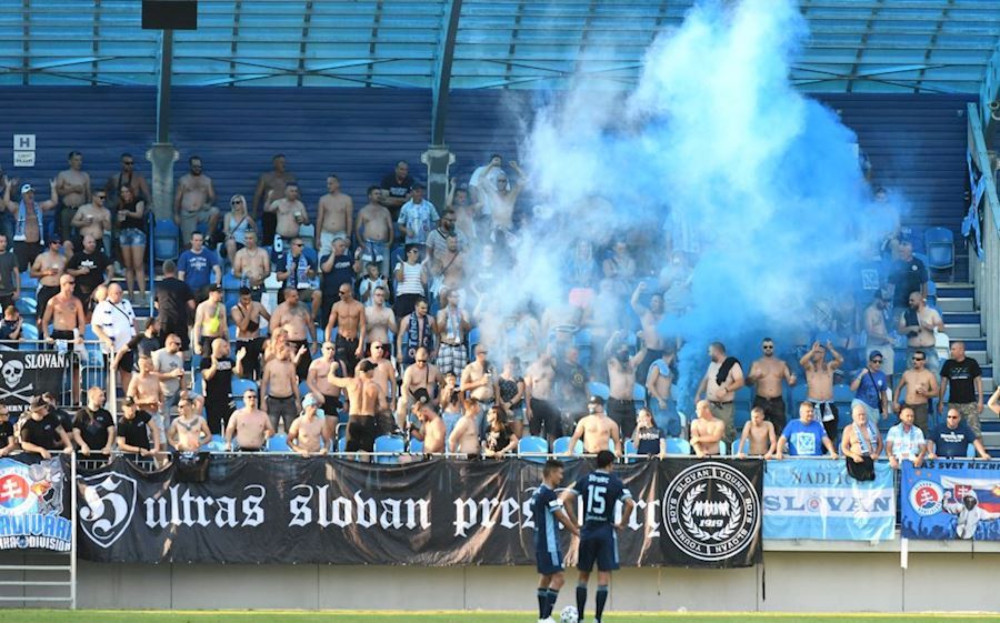 Na Slovensku se rozeběhla nejvyšší soutěž a v prvním kole se odehrálo utkání mezi Nitrou a Slovanem Bratislava (0:5) jak to vypadalo na tribunách a pohledy obou táborů naleznete níže...
