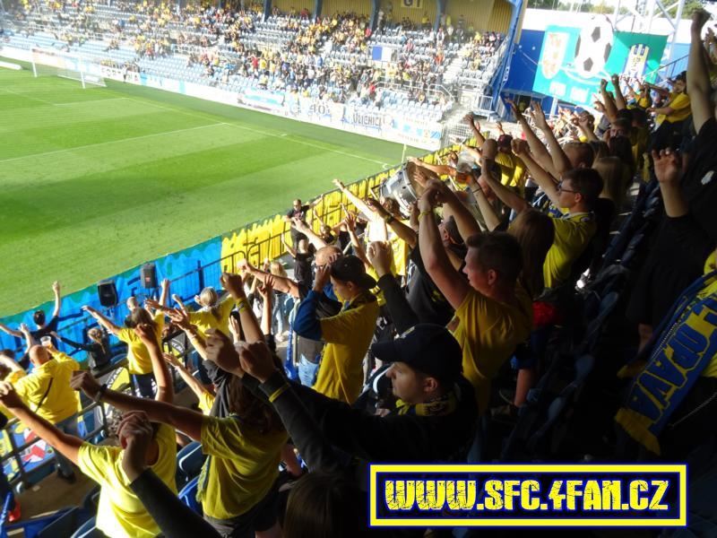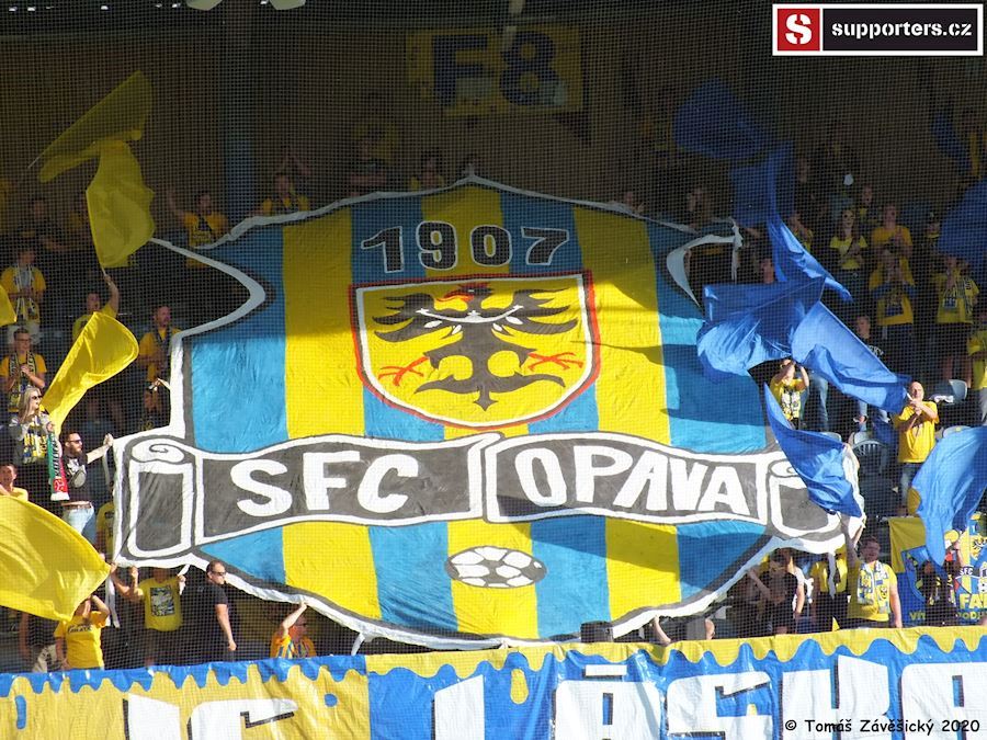 Zhruba ve 20 minutě si domácí ultras připravili choreo s nápisem na plotě "V našem srdci je, láska k Opavě" doplněného velkým znakem klubu a zlutými a modrými vlajkami.