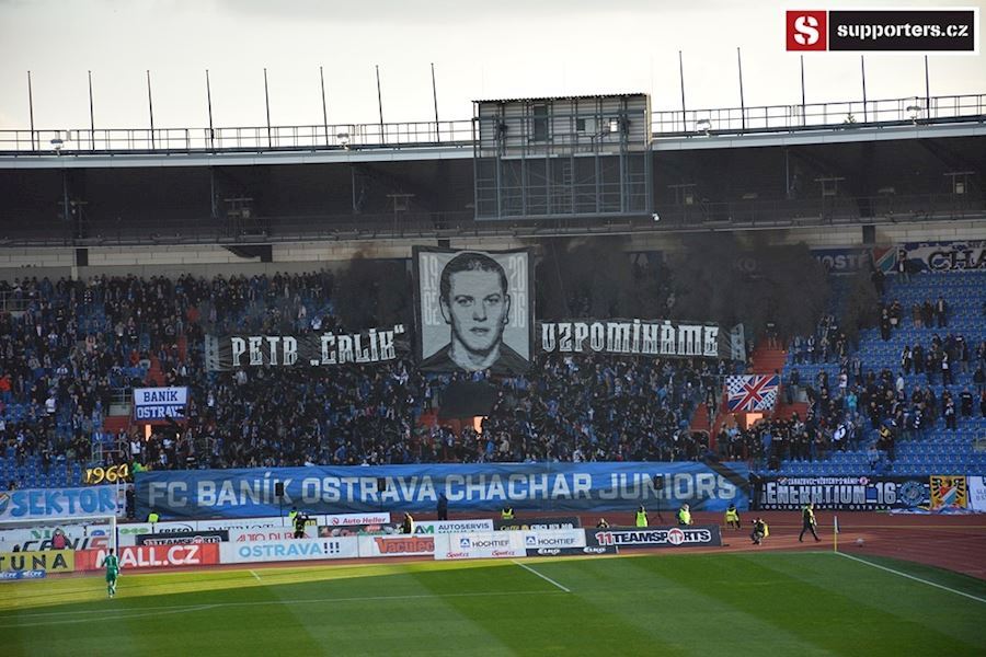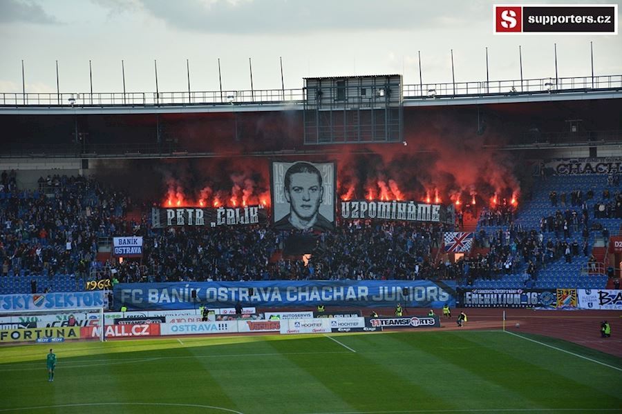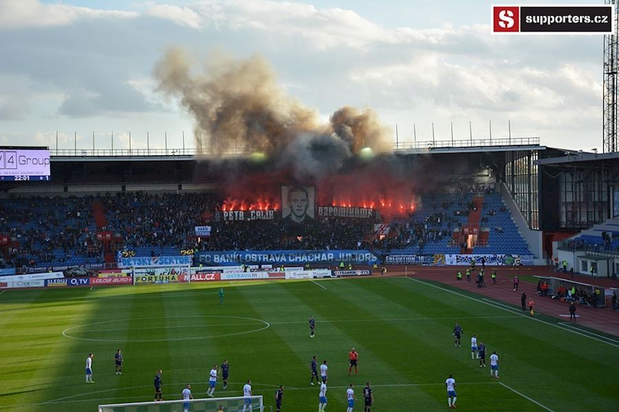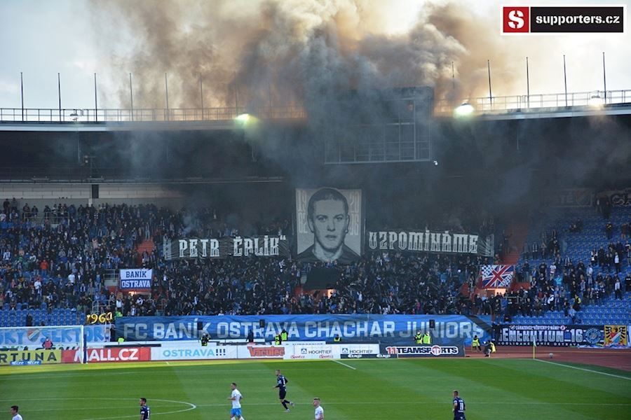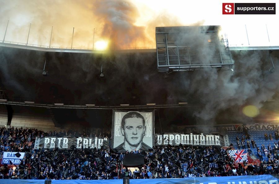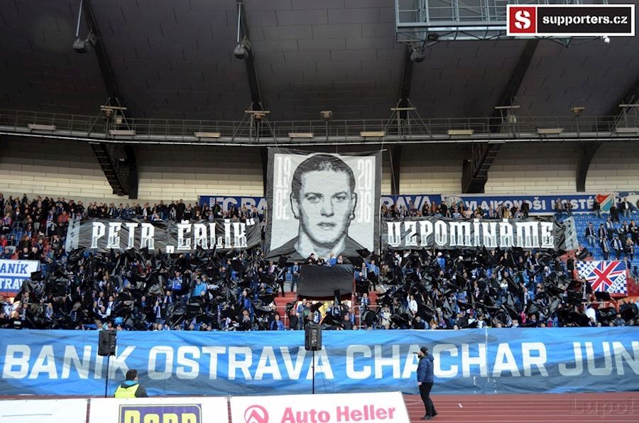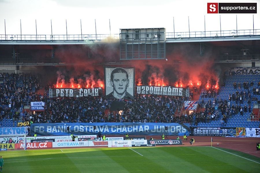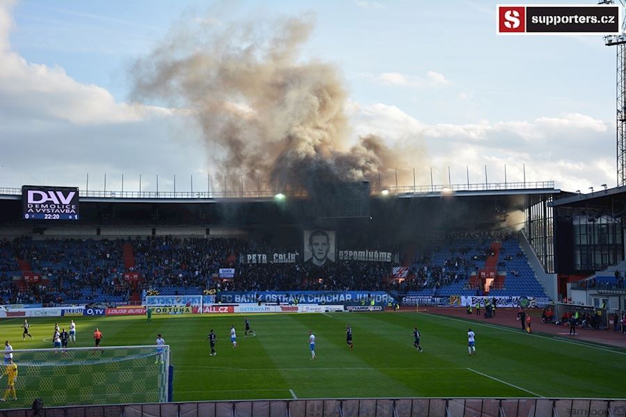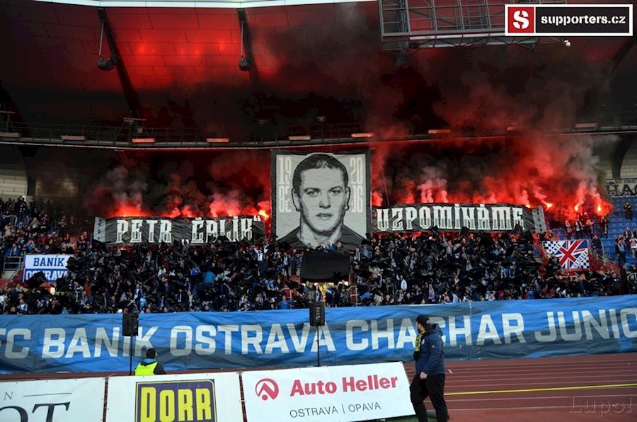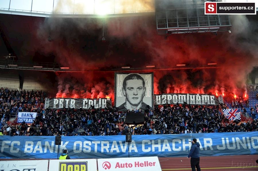 V Ostravě 7.713 diváků, vzpomínkové choreo Chacharů pro Čalíka, dětský sektor, pyro a početný výjezd fanoušků Slovácka...