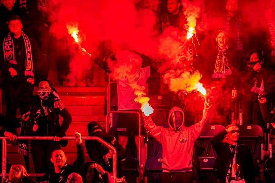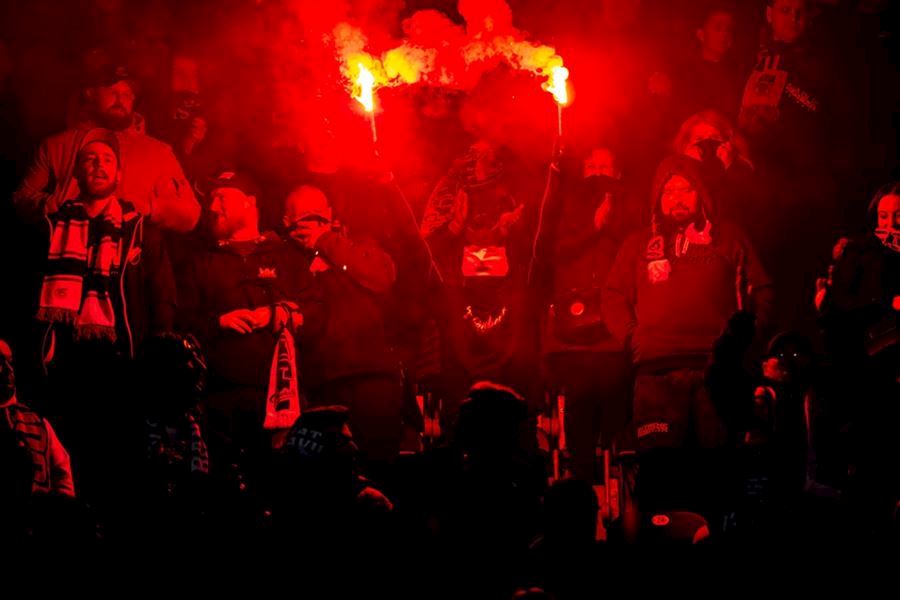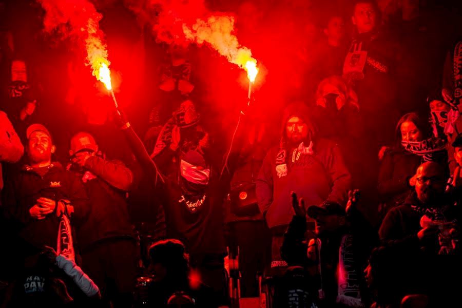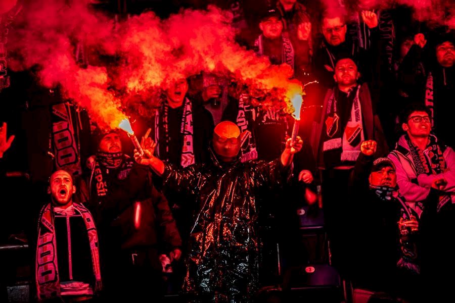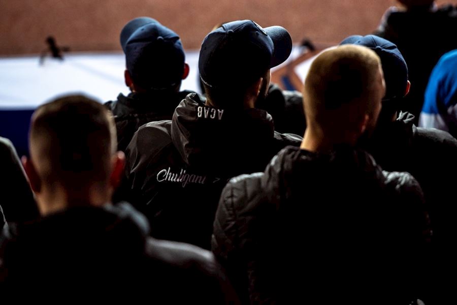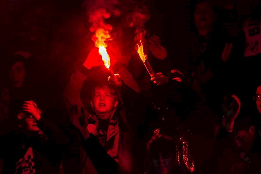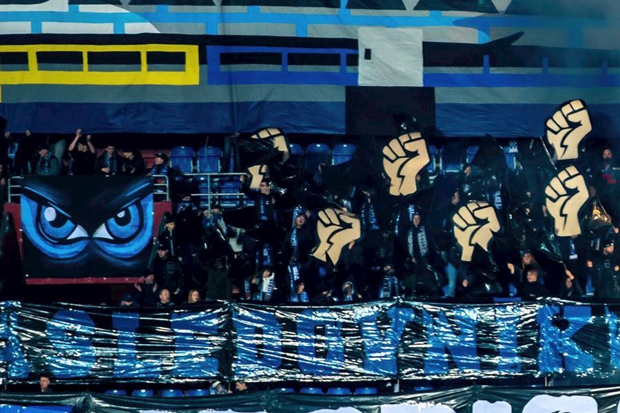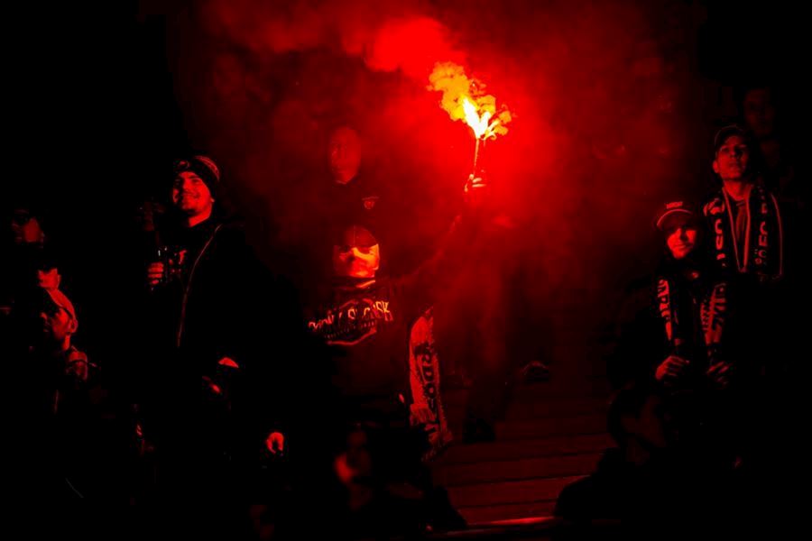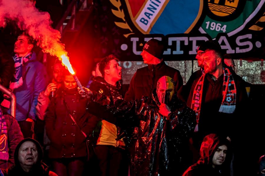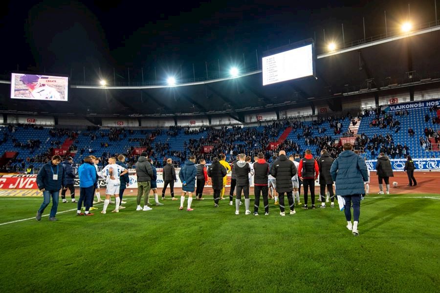 V Ostravě se slavilo alespoň v hledišti... Chuligáni z Bazalů! Jedna vlajka - stovky následovníků. Po 25 let ozdobou českých stadionů. Sigma s nápisy - Čas konat! Čas Odejít!