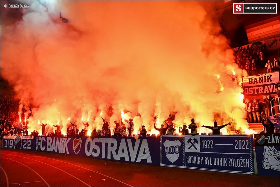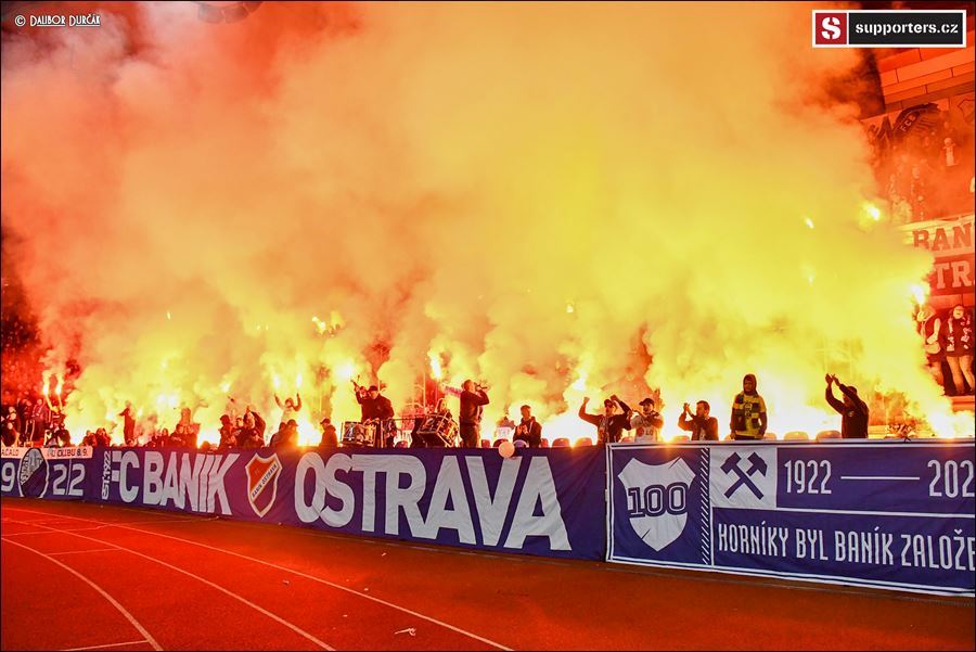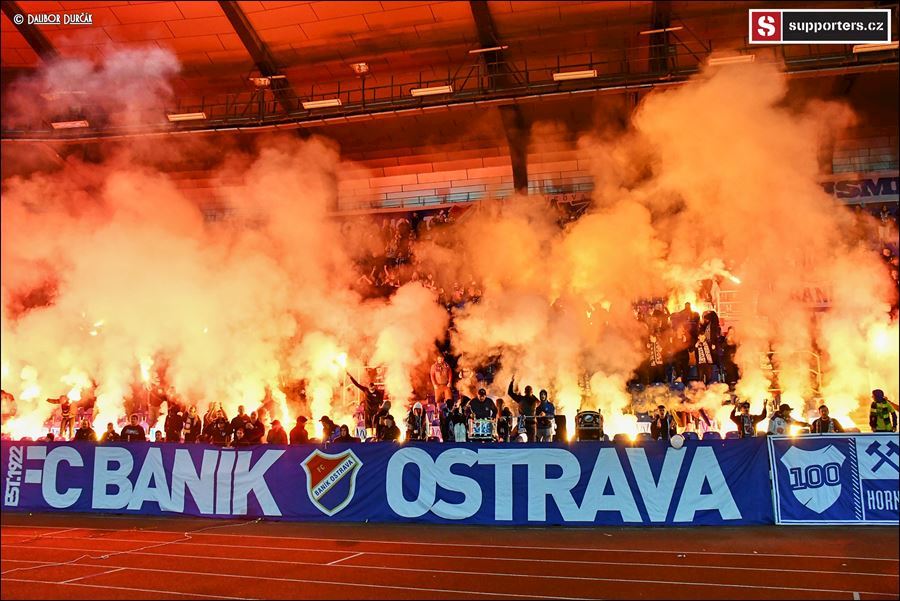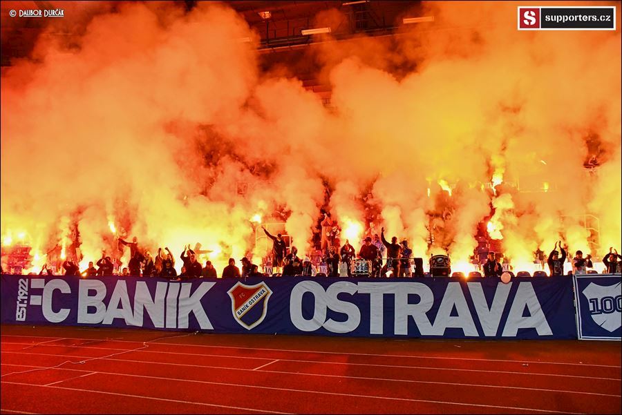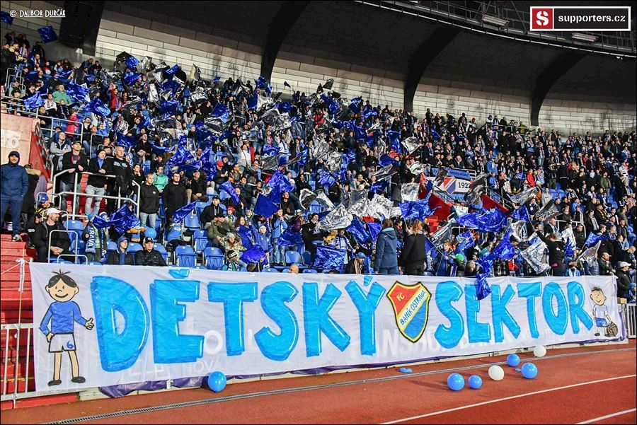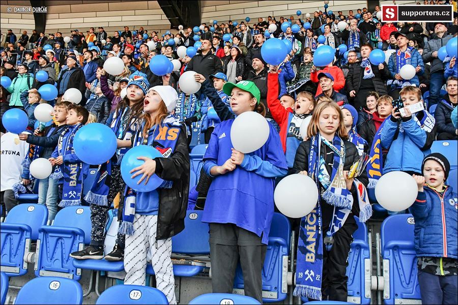 V Ostravě vzkaz do sektoru nebe, dětský sektor, kvalitně zaplněný sektor hostí a tradiční pyrotechnická vložka... Baník porazil Bohemians 1905 4:1. Utkání sledovalo 7.556 diváků.