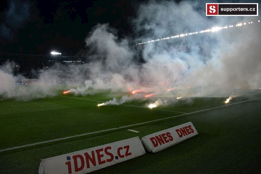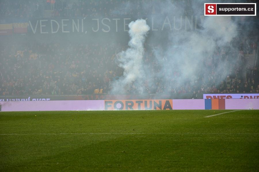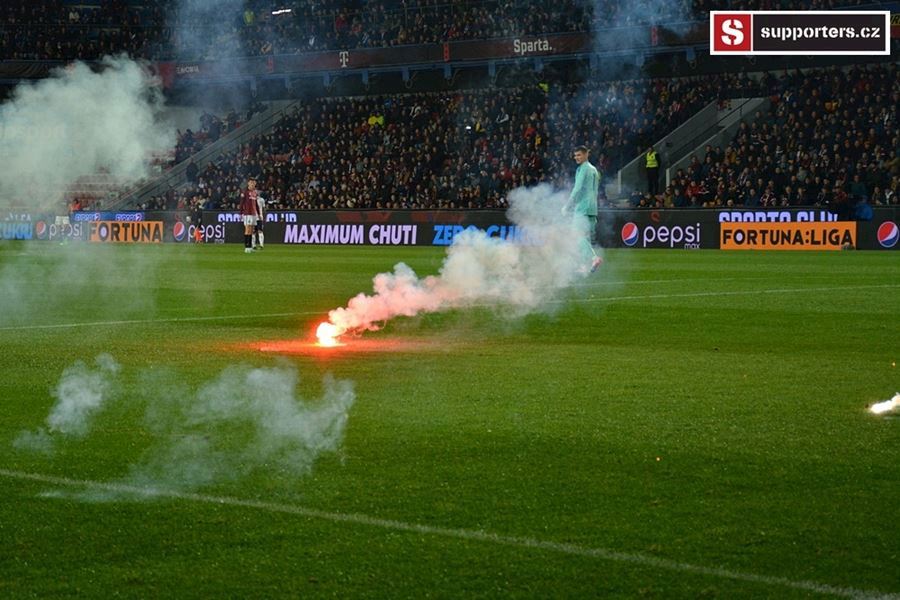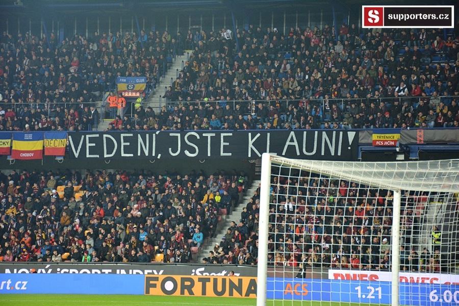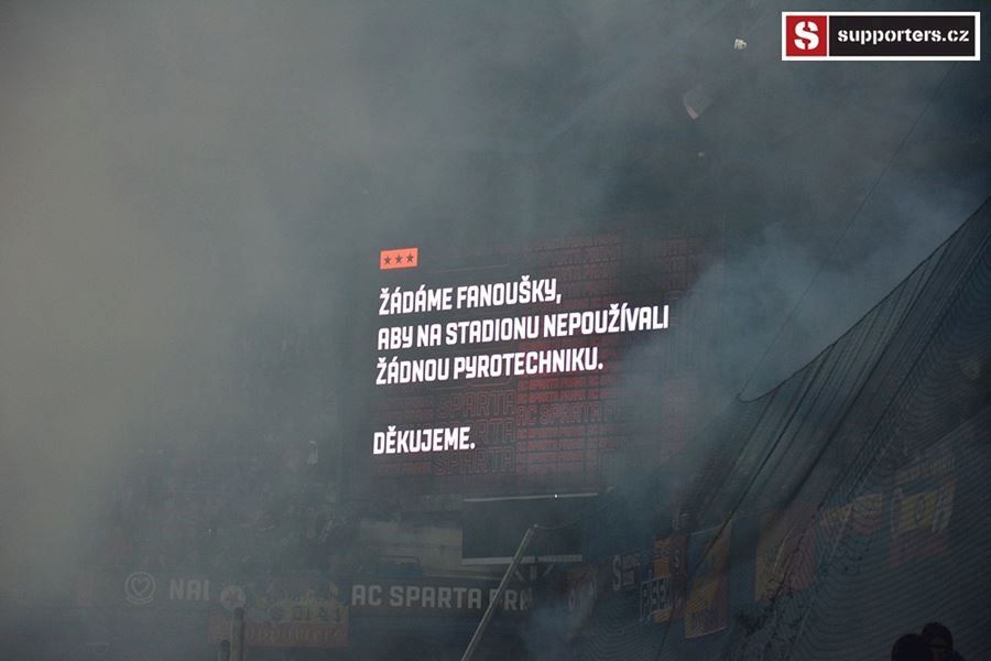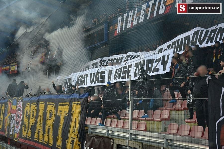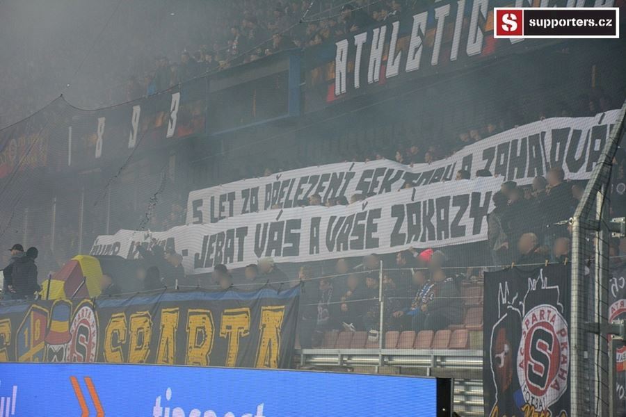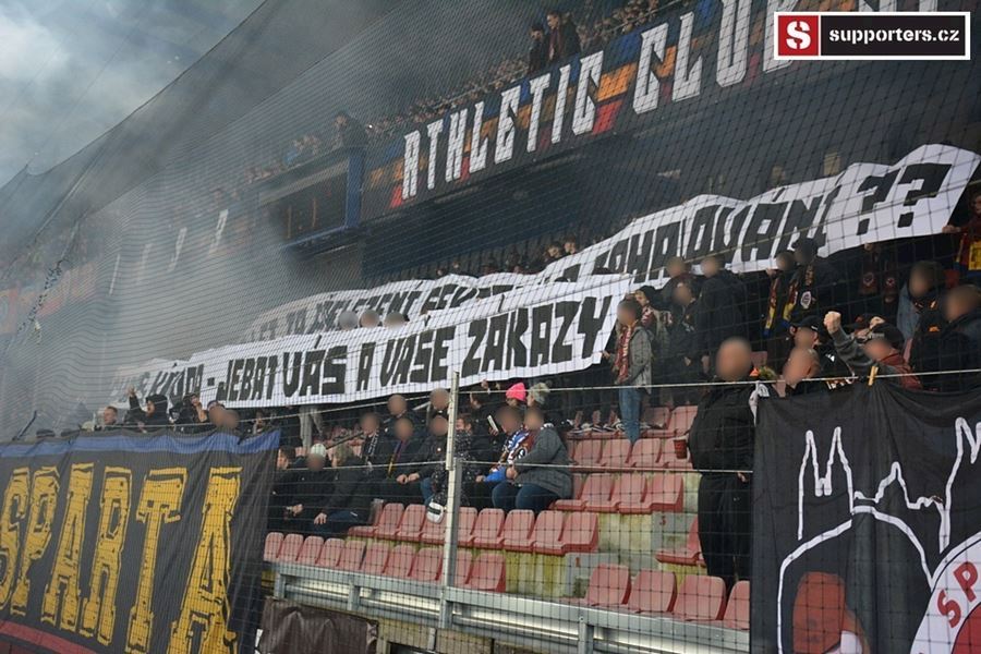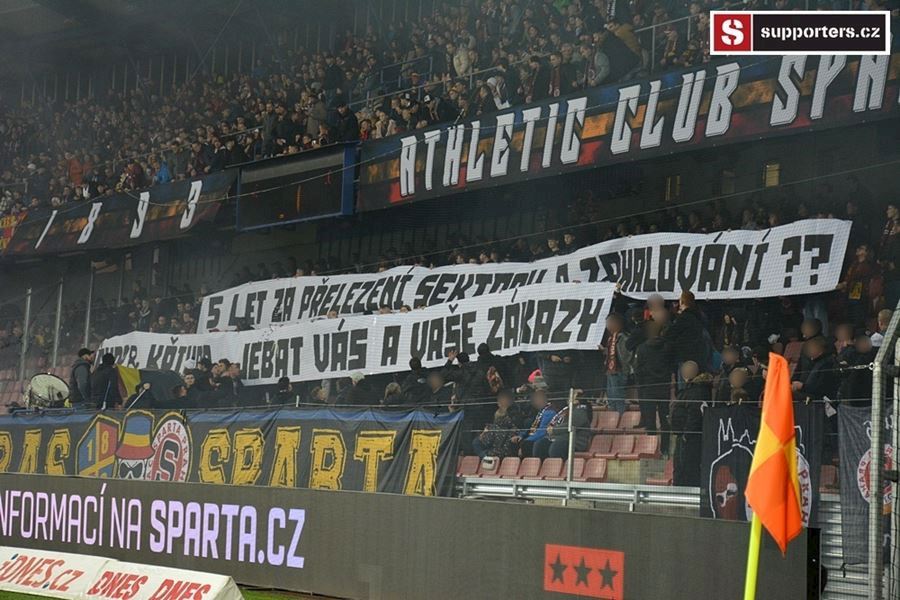 V minulém týdnu přišly několika lidem zákazy od klubu na 5 let a k tomu vysoké pokuty v řádu desetitisíců. Jedná se o velmi aktivní část našeho kotle. Odůvodnění těchto vysokých trestů je přelezení plotu z kotle na hlavní tribunu a zahalování. Naší reakcí v prvním poločase a následným odchodem byl sdělen jasný postoj k těmto sazbám. Od této chvíle vyhlašujeme konec jakýchkoliv fans aktivit v domácím sektoru Sparty.Na venkovních zápasech budeme fungovat normálně! Tento stav bude trvat do vyřešení výše uvedených událostí, což znamená zmírnění, nebo zrušení trestů.