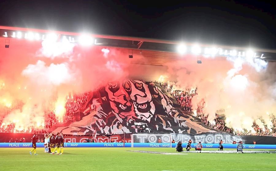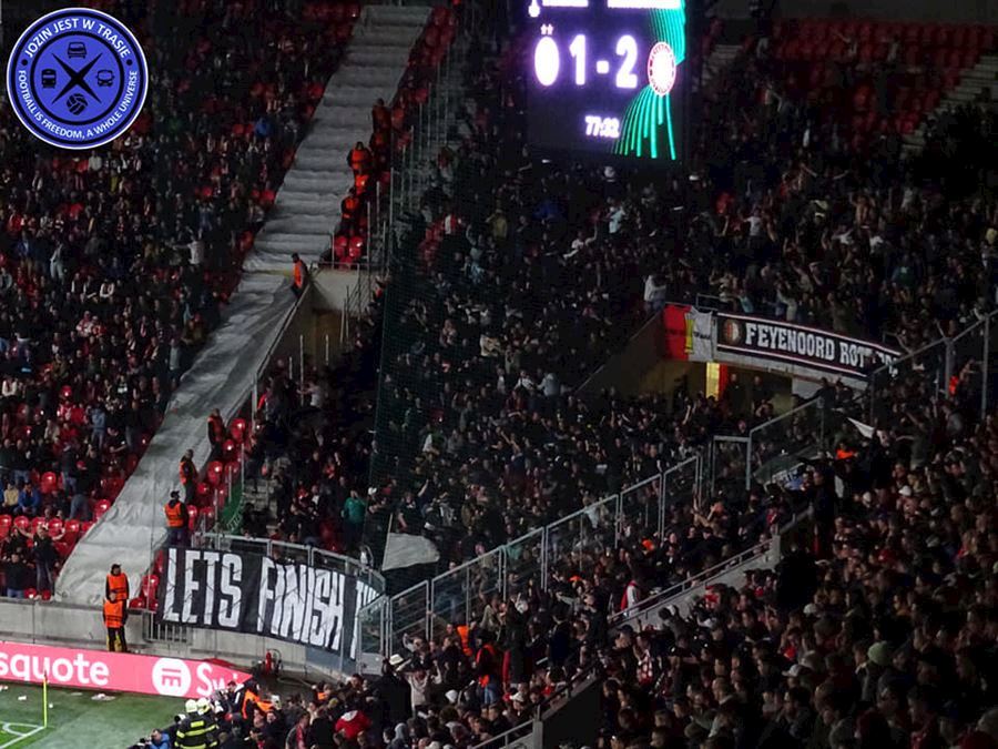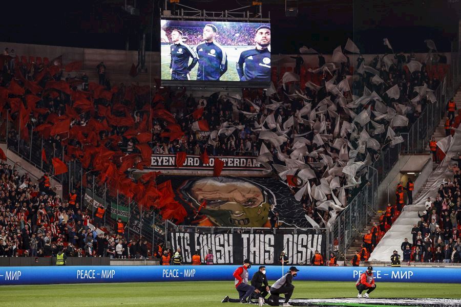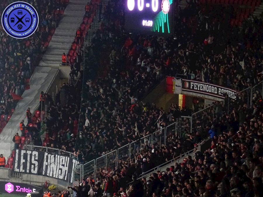 Vyprodaný Eden se loučil s Konferenční ligou, choreografií, kartoniádou i vůní pyrotechniky... Slavia po remíze 3:3 podlehla doma Feyenoordu 1:3 a končí před branami semifinále.