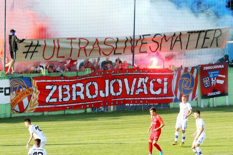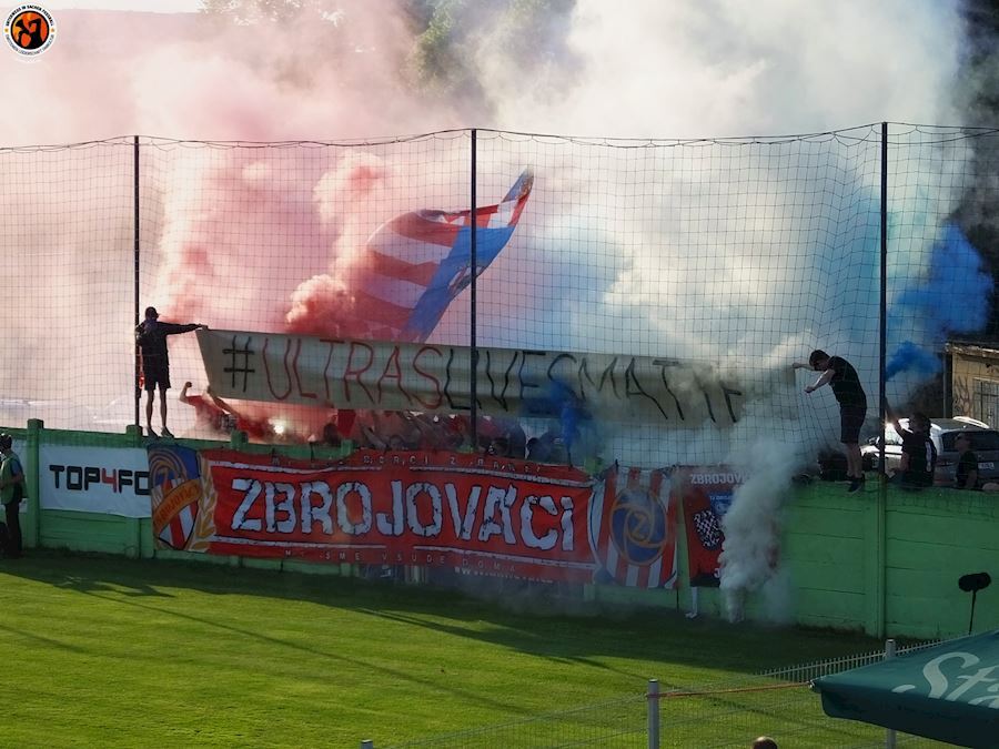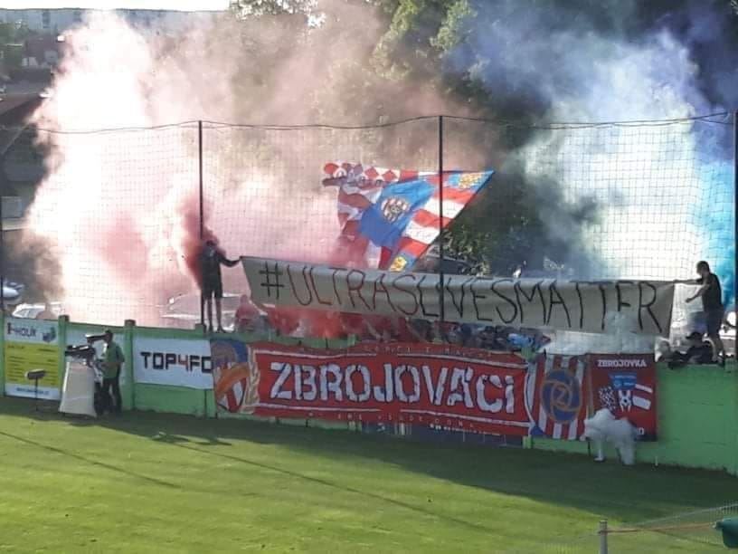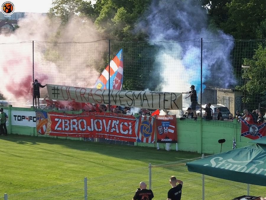 Zbrojováci si postavili vlastní tribunu a utkání okořenili pyrotechnikou...