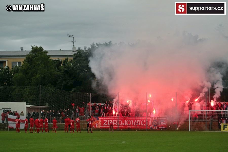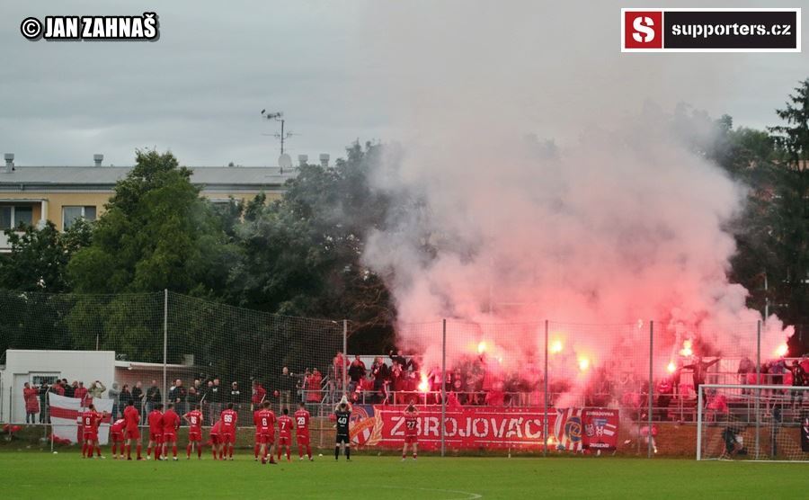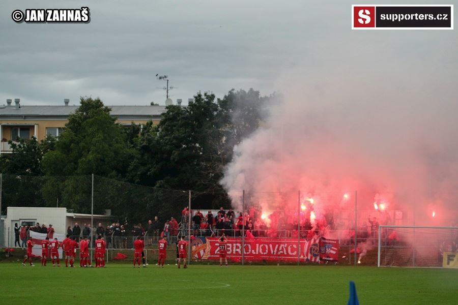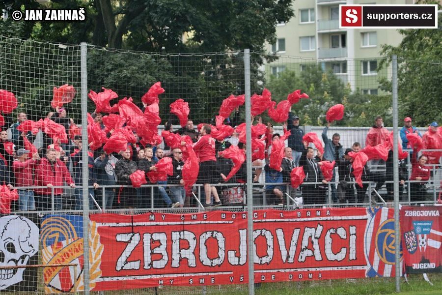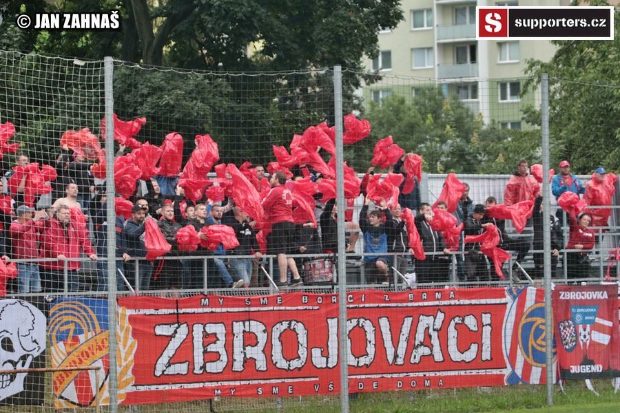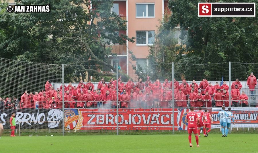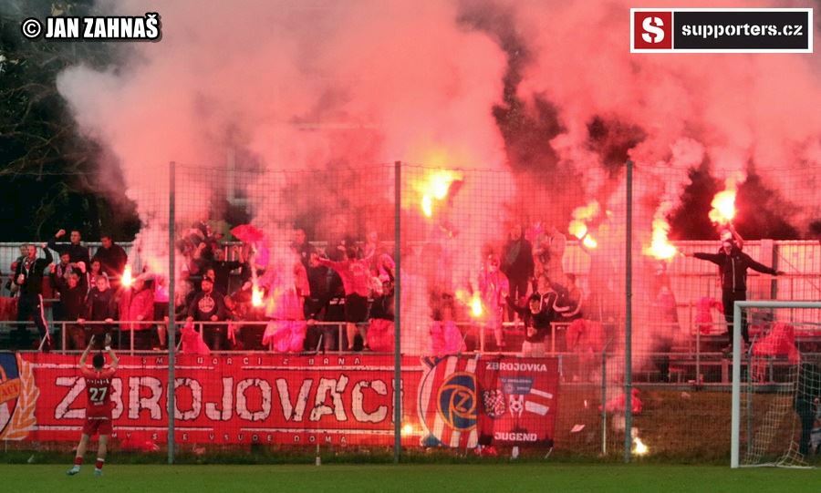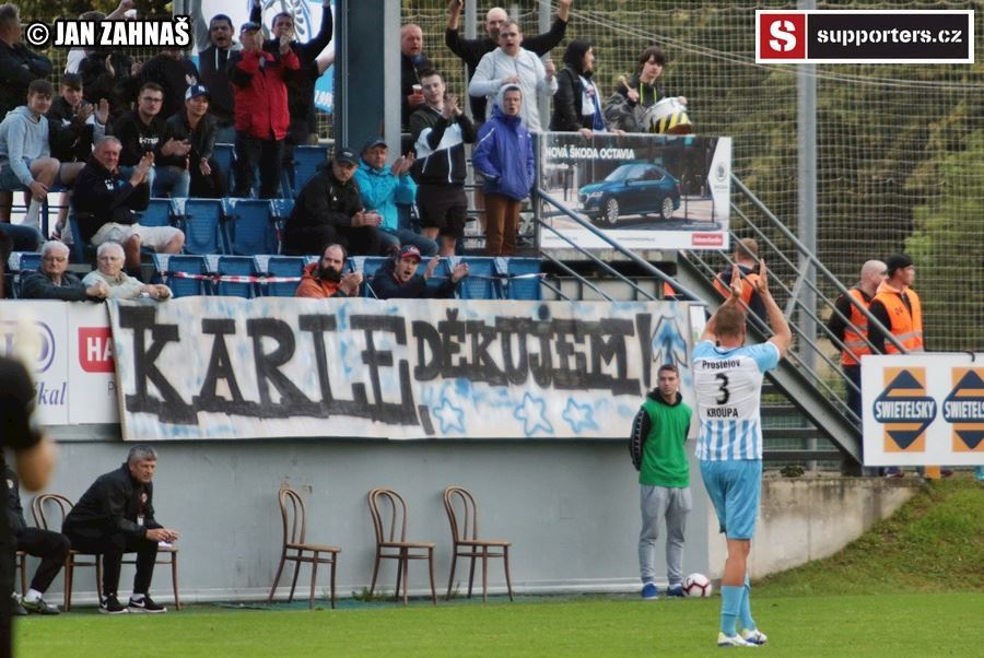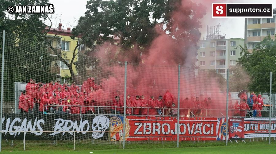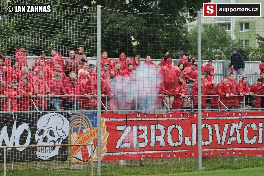 Brněnská Zbrojovka zavítala do Prostějova a s ní početná skupina fanoušků. A byli to právě Zbrojováci, kteří se starali o atmosféru utkání, které nakonec skončilo bezbrankovou remízou 0:0. Domácí se loučili s Karlem Kroupou, který je odchovancem právě Zbrojovky. V sektoru hostí byla v závěru vidět pyrošou.