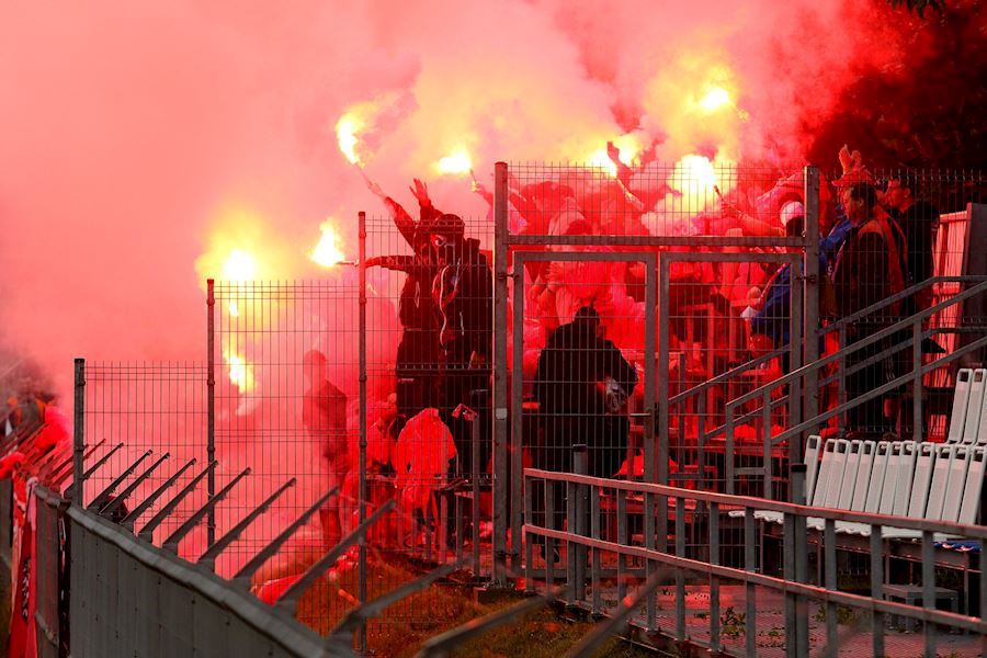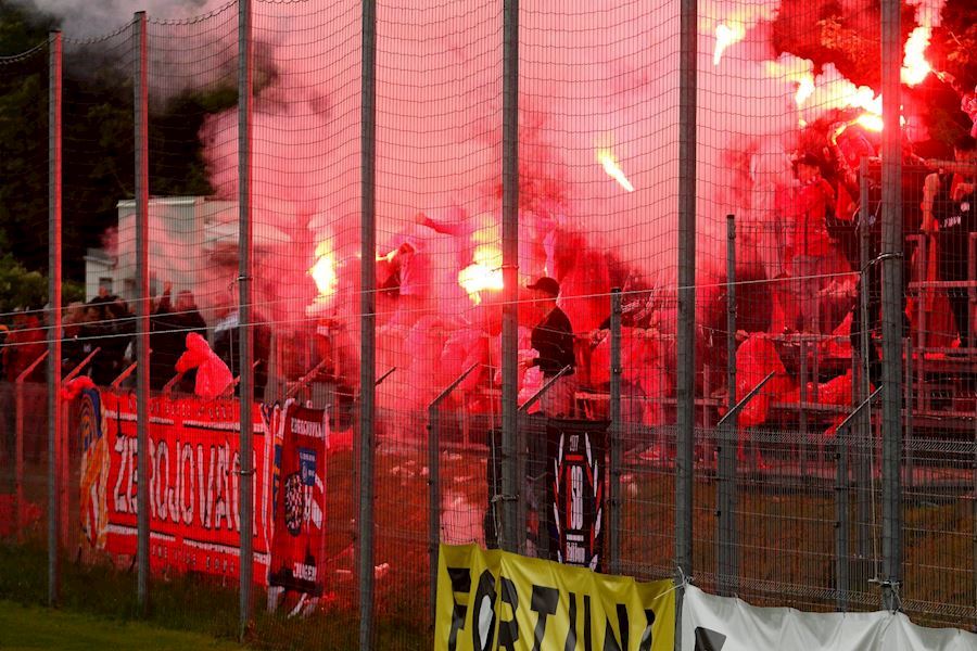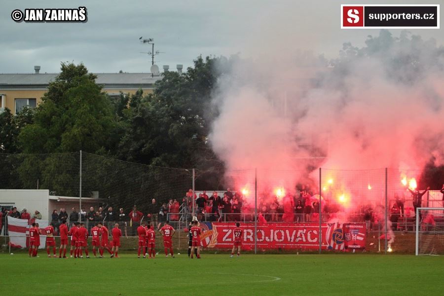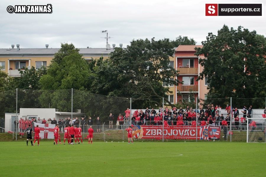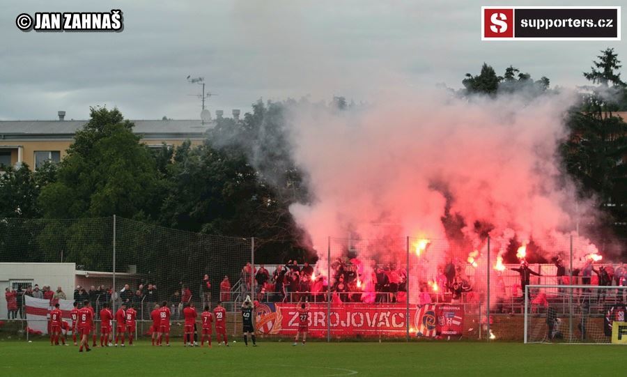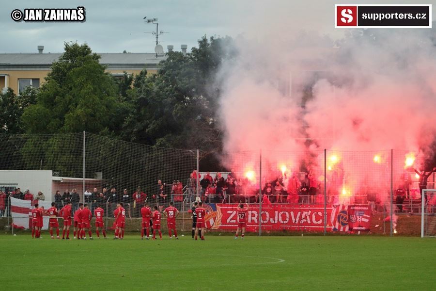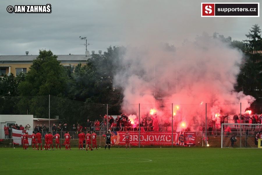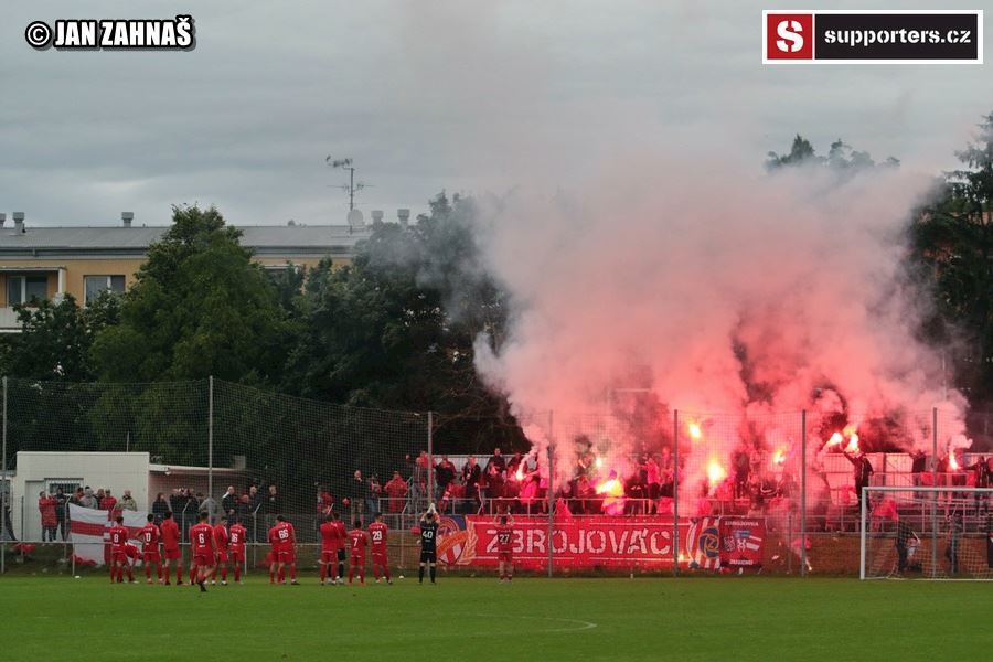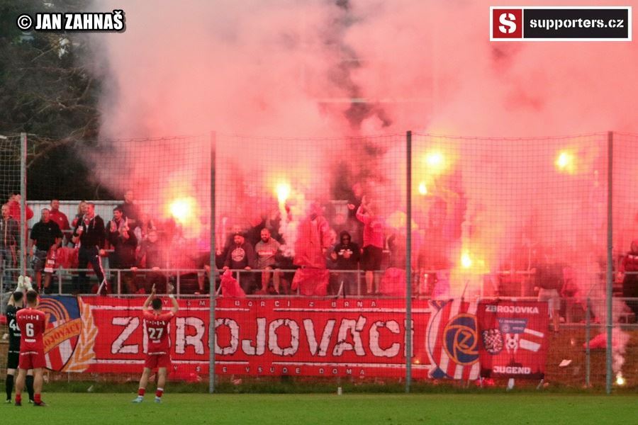 Brněnská Zbrojovka zavítala do Prostějova a s ní početná skupina fanoušků. A byli to právě Zbrojováci, kteří se starali o atmosféru utkání, které nakonec skončilo bezbrankovou remízou 0:0. Domácí se loučili s Karlem Kroupou, který je odchovancem právě Zbrojovky. V sektoru hostí byla v závěru vidět pyrošou.